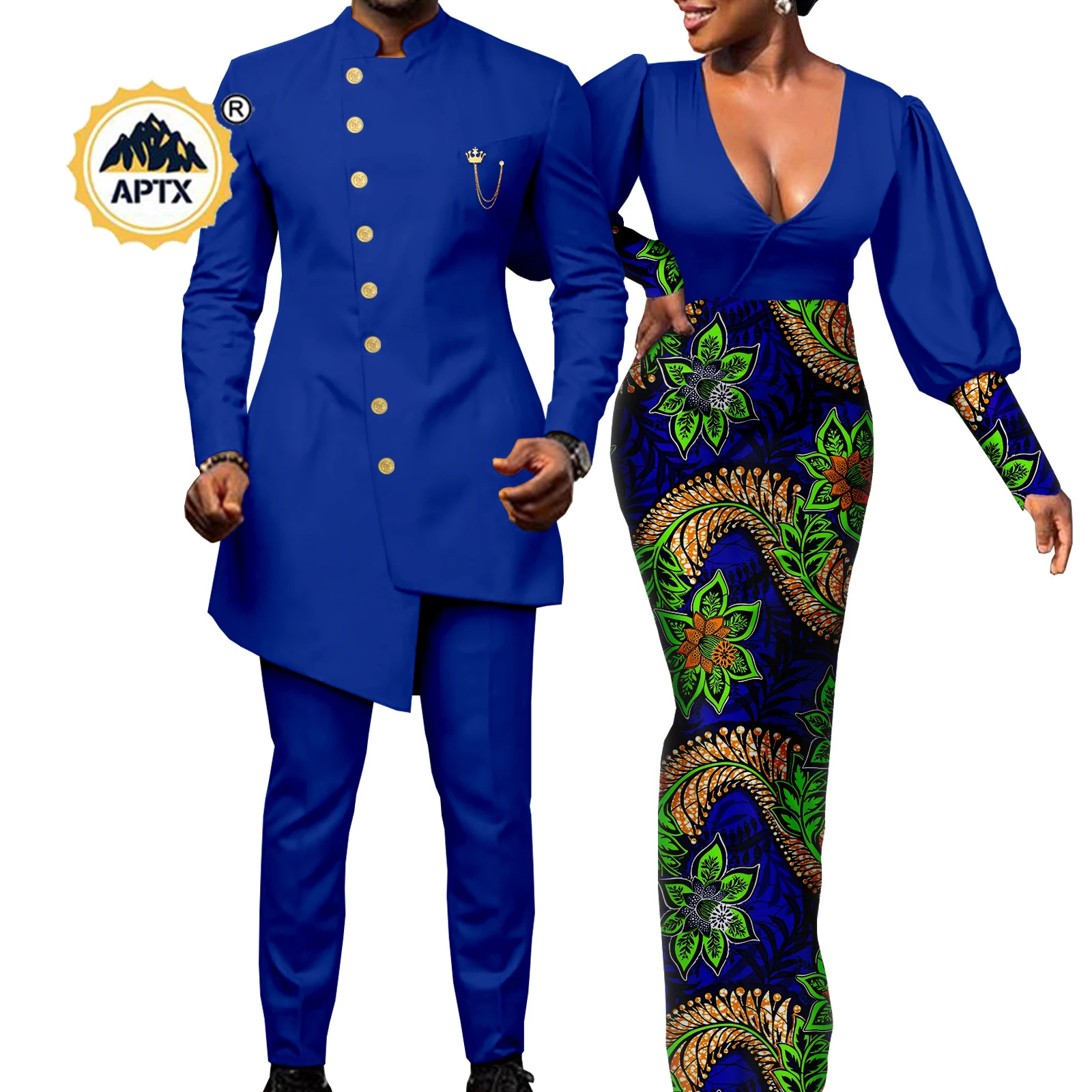 African Couples Clothes Bazin Riche African Dresses for Women Match Men Outfits Chain Top &Pants Sets Dashiki Vestidos Y22C020