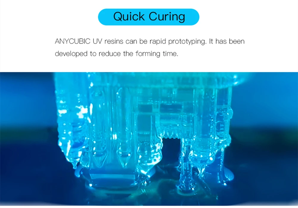 Quick Curing - ANYCUBIC UV resins can be rapid prototyping. It has been developed to reduce the forming time.