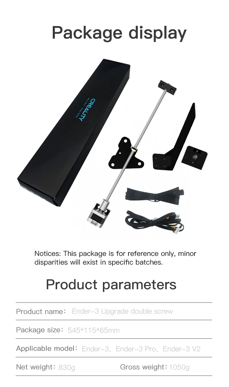 • Creality official Dual Z-axis Upgrade Kit Ender-3 3D Printer Parts Dual Screw Rod Upgrade Kit for Ender 3 Ender 3 Pro Ender 3 V2