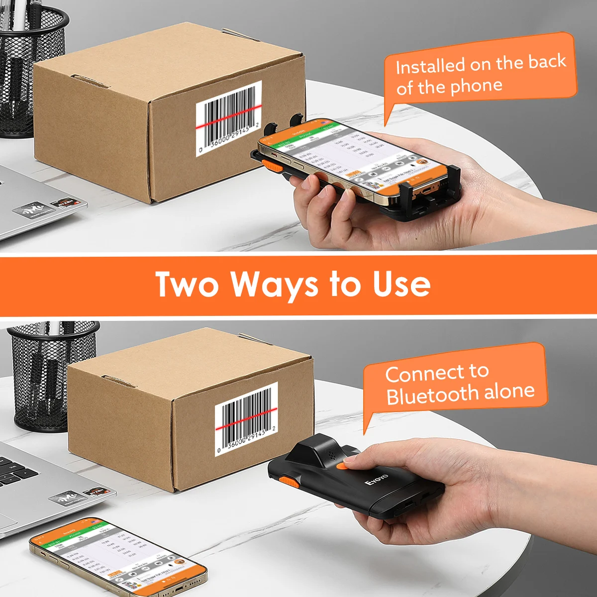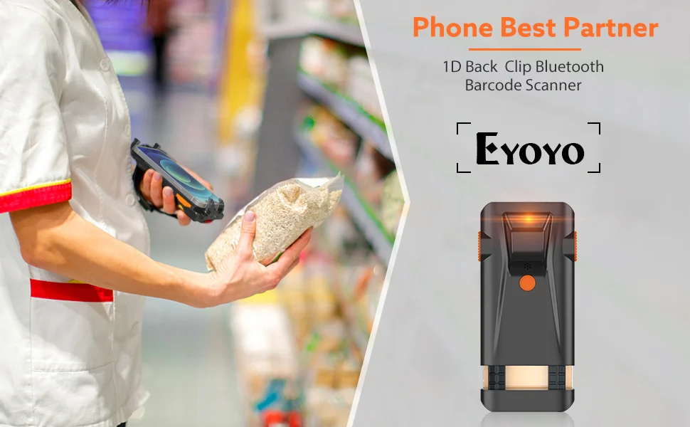 • Eyoyo EY-024L1D 2D Back Clip Bluetooth Barcode Scanner Phone Portable Barcode Reader Data Matrix 1D Scanner Windows/Android/ iOS