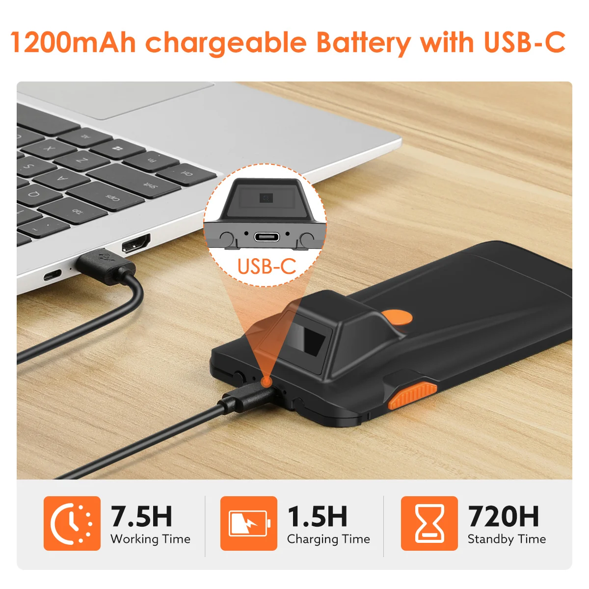 5. 500mAh rechargeable battery can use up to 10H continuous scanning time, only need 4H to charge. Standby time is up to 720H.