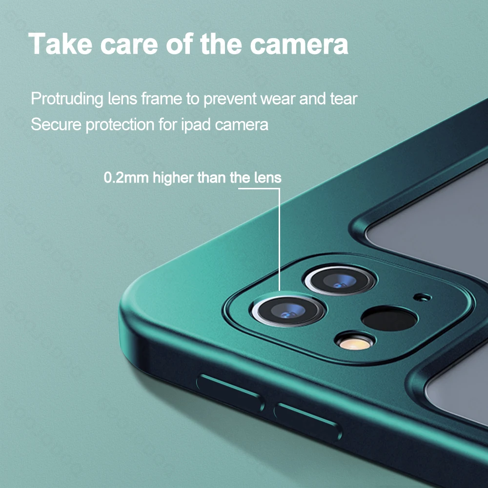 The protruding lens frame prevents wear and tear and provides a secure protection for the iPad camera.