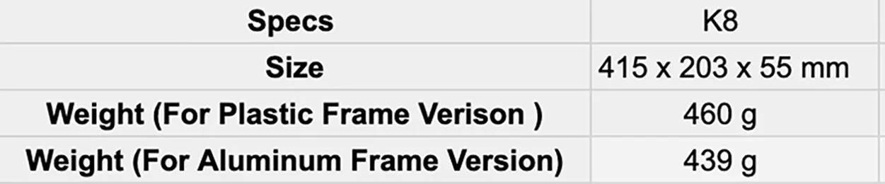 The only difference is the inner edge of the carrying case. The K8 plastic frame version keyboard is thicker than the case for the K8 aluminum frame version keyboard.
