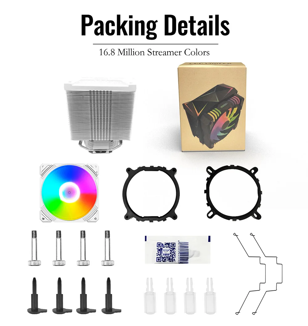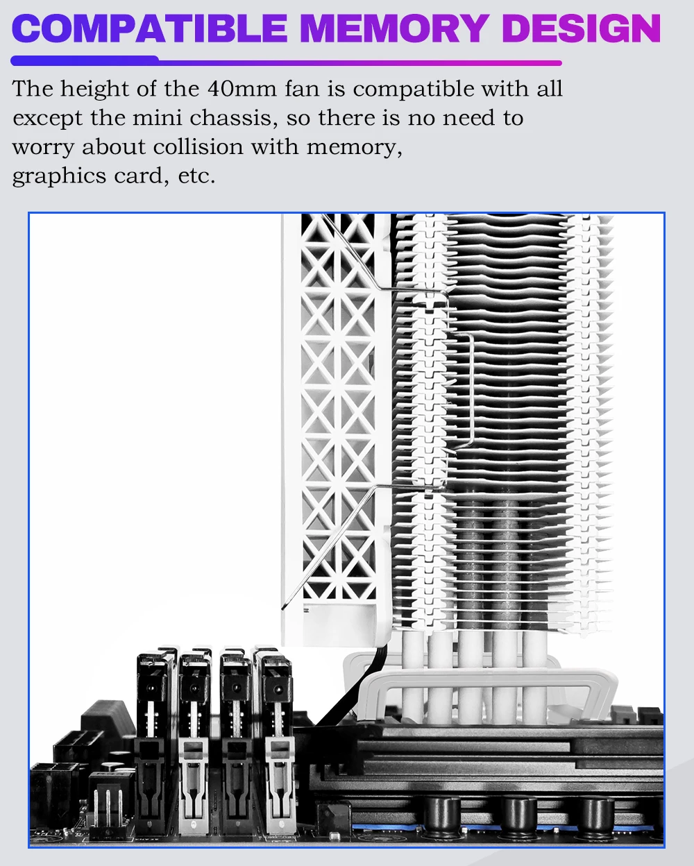 6. Strong compatibility: The specially designed bracket allows the CPU cooler to be compatible with most types of Intel and AMD sockets. For example Intel LGA775/1150/1155/1151/1200/1366/1700/2011/2011-V3 and AMD AM3/AM4/FM1/FM2 etc.