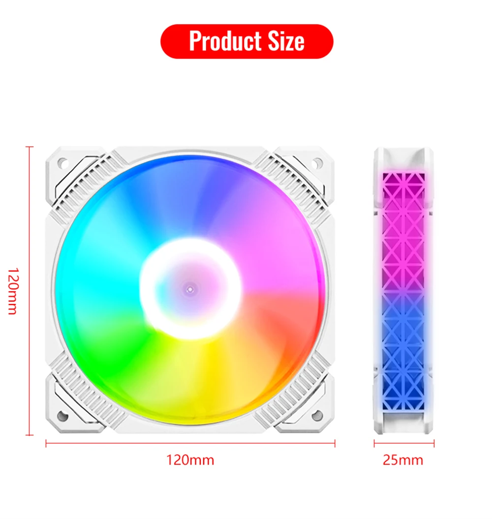 3. Product size: 120mm*120mm*25mm. Tip: Lighting is static RGB (not adjustable).