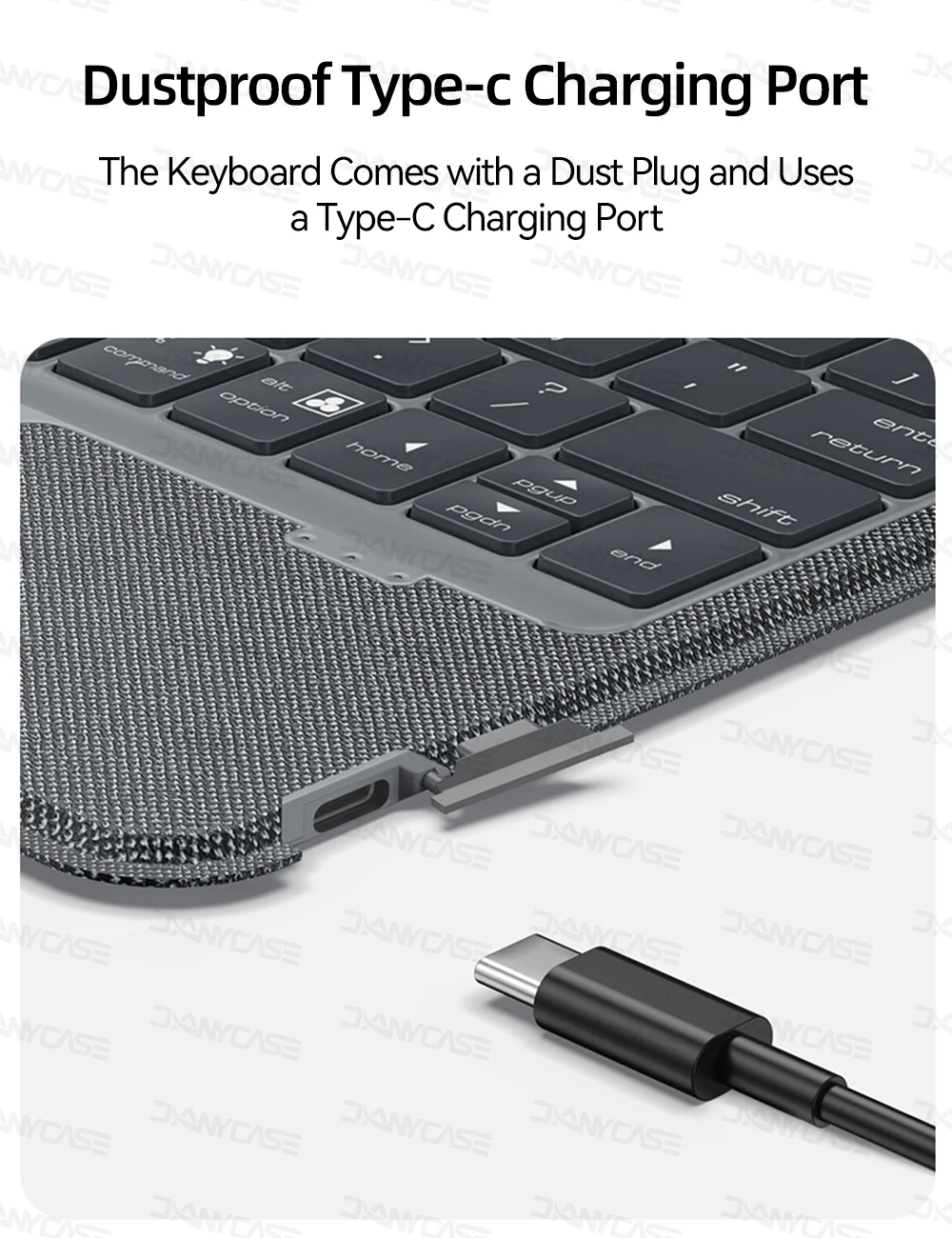 The Keyboard Comes with a Dust Plug and Uses a Type-c Charging Port.