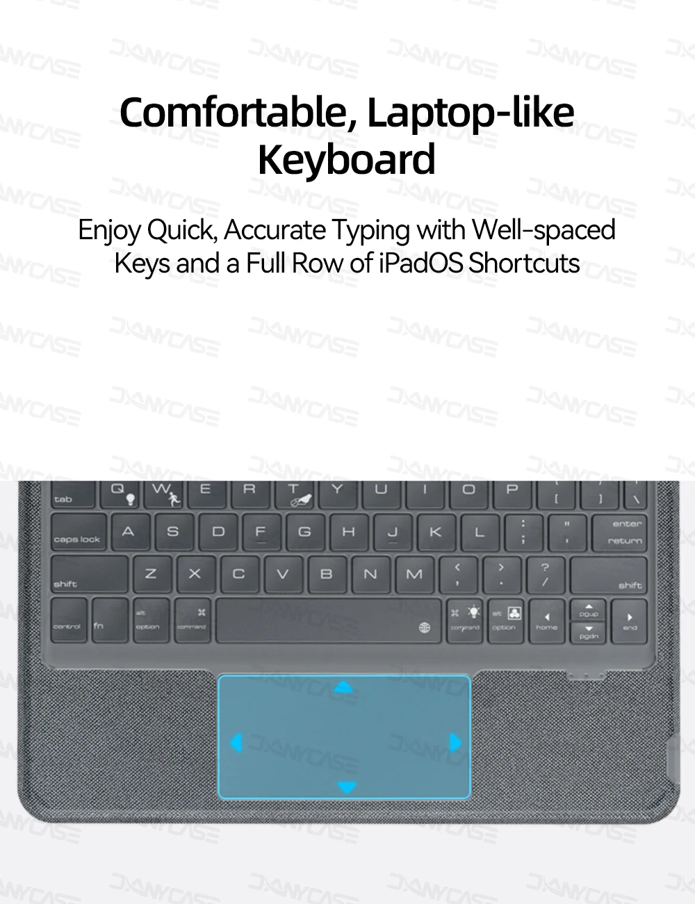 Enjoy Quick, Accurate Typing with Well-spaced Keys and a Full Row of iPadOS Shortcuts