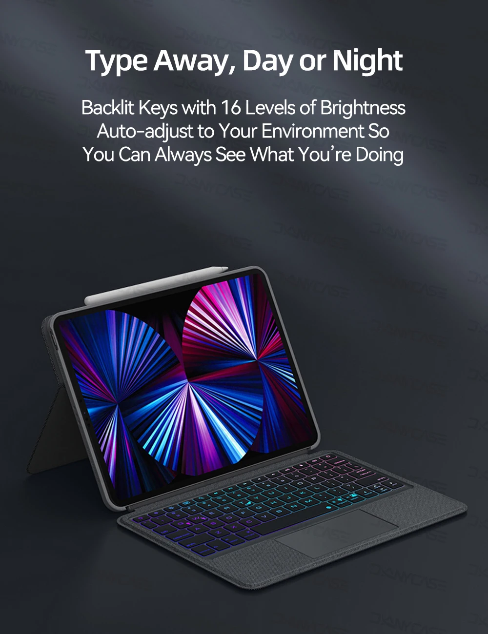 Backlit Keys with 16 Levels of Brightness Auto-adjust to Your Environment So You Can Always See What You're Doing.