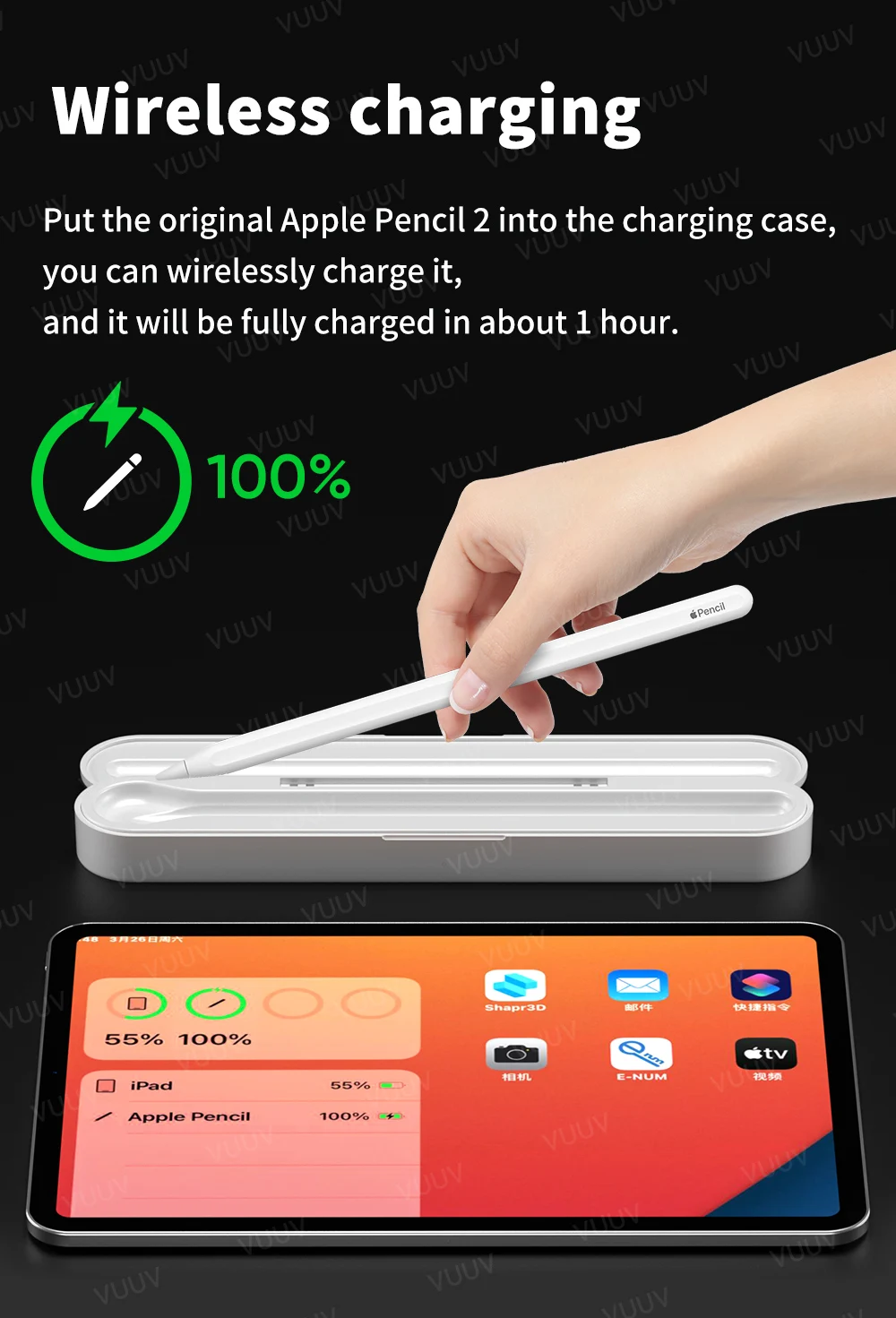 Put the original Apple Pencil 2 into the charging case, you can wirelessly charge it, and it will be fully charged in about 1 hour.