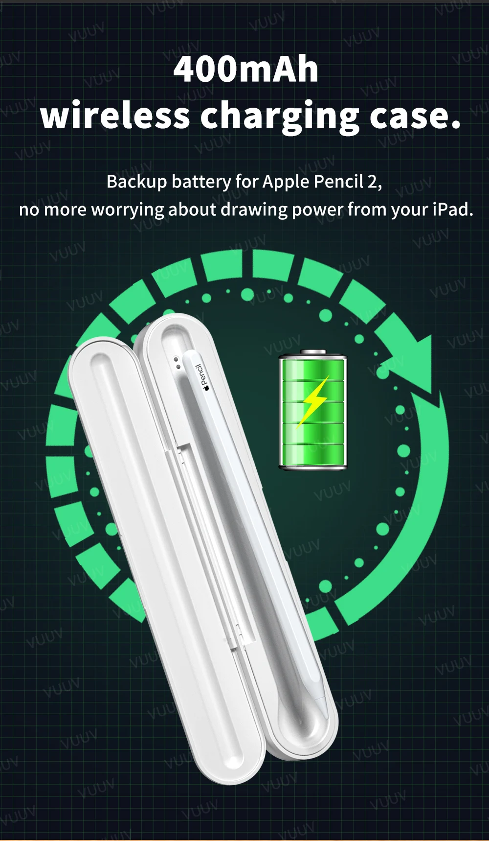 400mAh charging case, backup power supply for original Apple pencil 2nd generation.