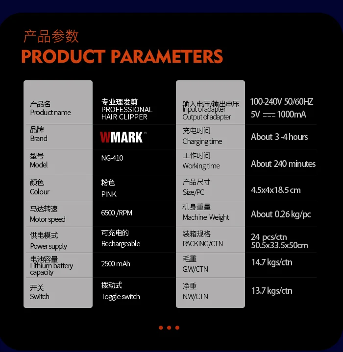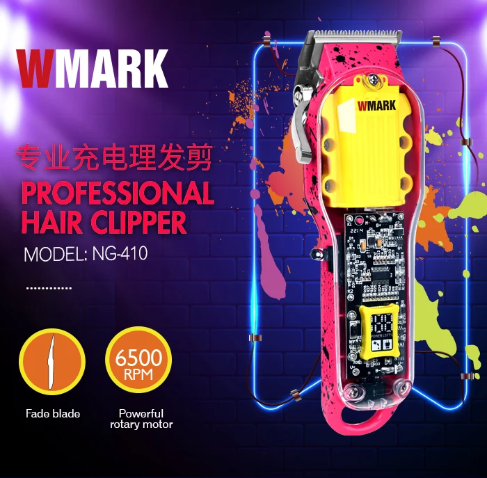 2022 NEW!!WMARK NG-410 Transparent Style Ultra-thin moving blade Professional Rechargeable Clipper with fade blade