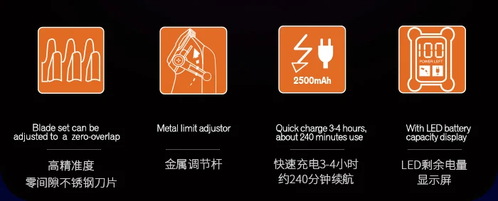 • High quality stainless steel fade blades,