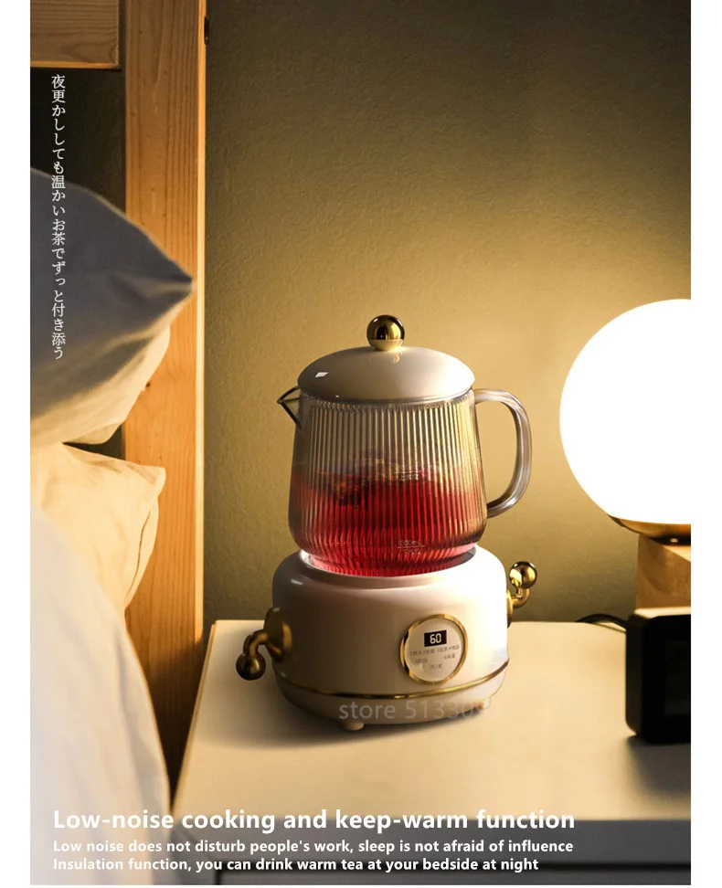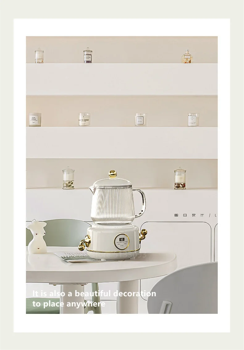• 600ml Glass Electric Kettle 220V Anti-dry Fast Boiling Kettle Health Preserving Pot Household Retro Teapot Automatic Thermo Pot