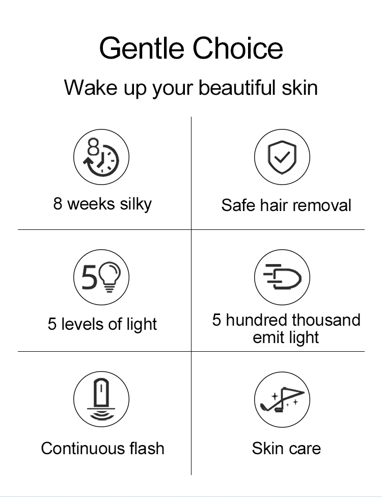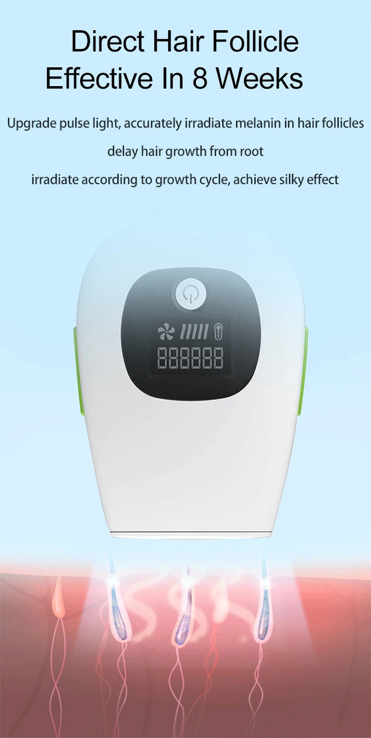 IPL Photonic Technology Accurate spotlight design Pulsed light has a higher energy density providing a safe and gentle exposure experience Straight into the roots of hair, faster hair removal The secret of silky beauty