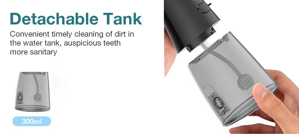 The newly upgraded detachable and fully open water tank, the internal gravity ball design, no matter from which angle it is inclined to absorb water, it will not block the use, and deeply clean the mouth.