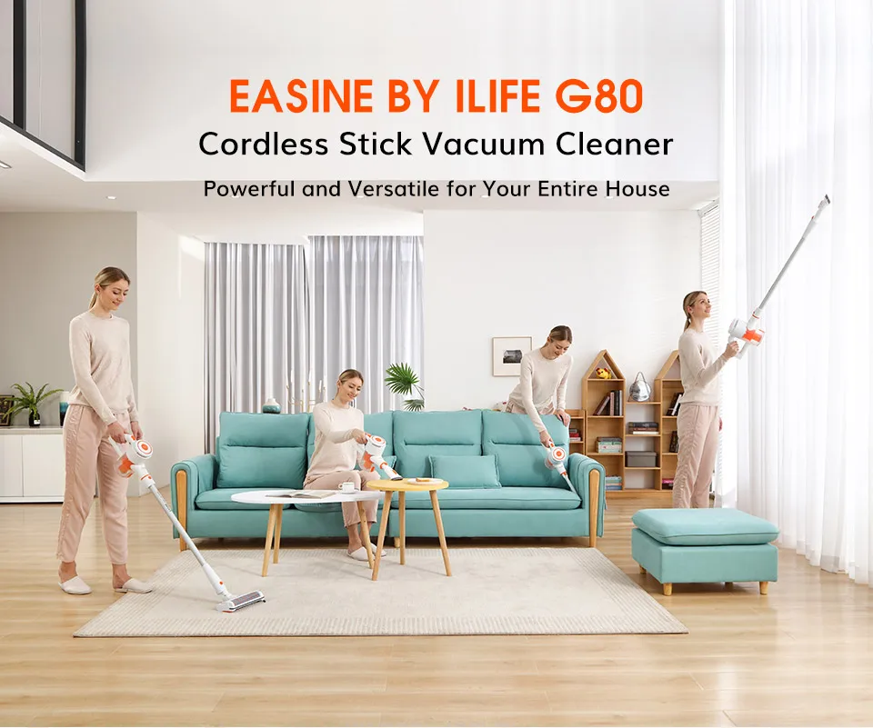 ILIFE G80 Cordless Handheld Vacuum Cleaner, 22000pa Suction, 45 mins Runtime,LED Illuminate, 45mins Runtime, Home Appliance