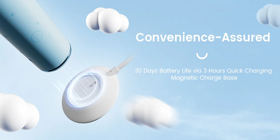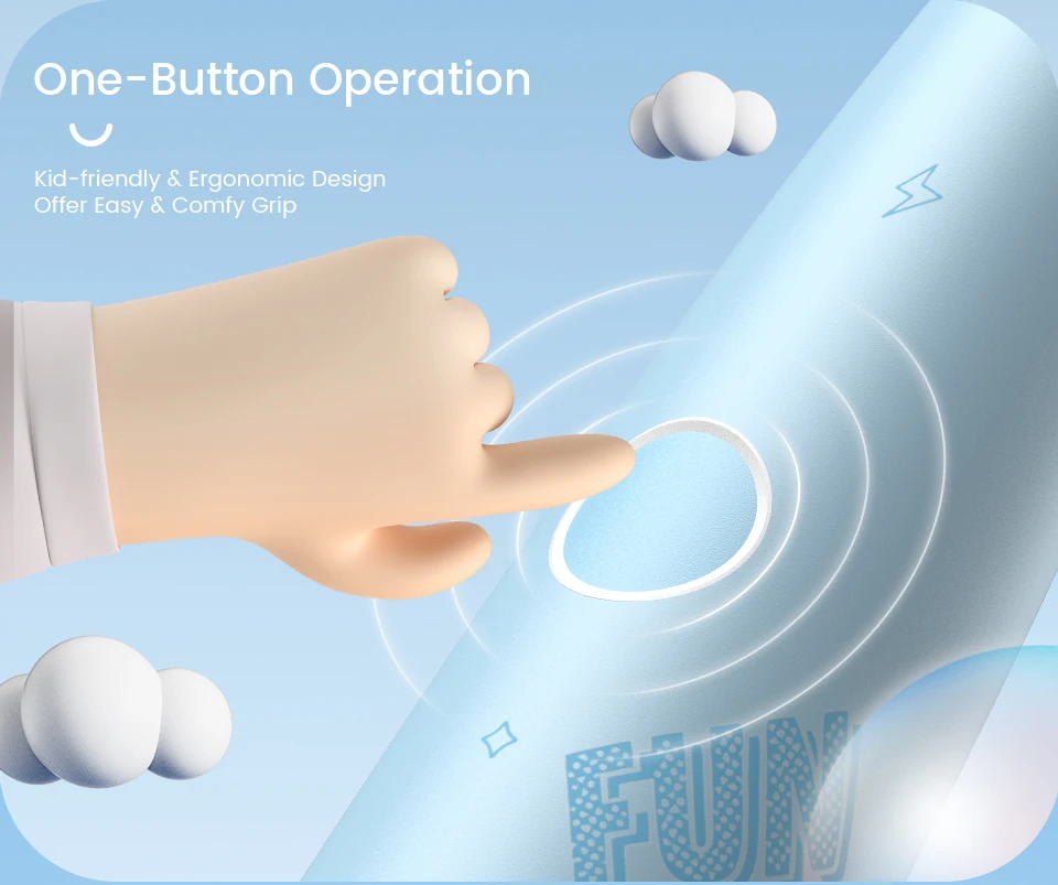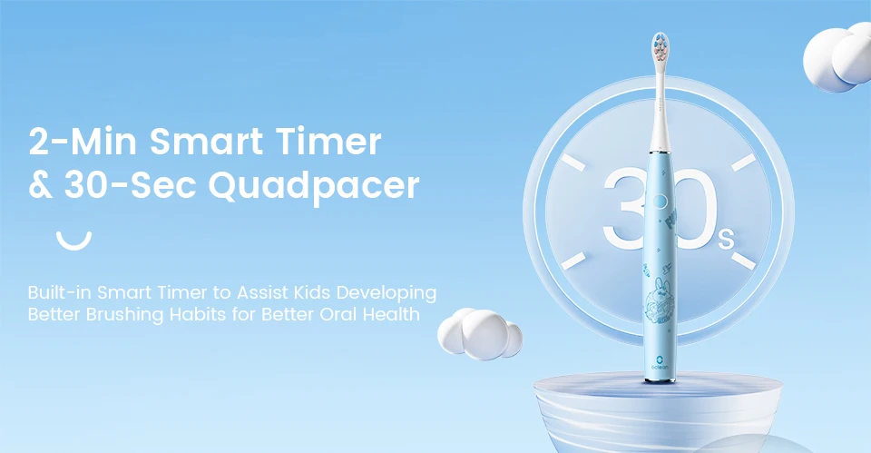 2-Min Smart Timer & 30-Sec Quad pacerBuilt-in Smart Timer to Assist Kids Developing Better Brushing Habits for Better Oral Health