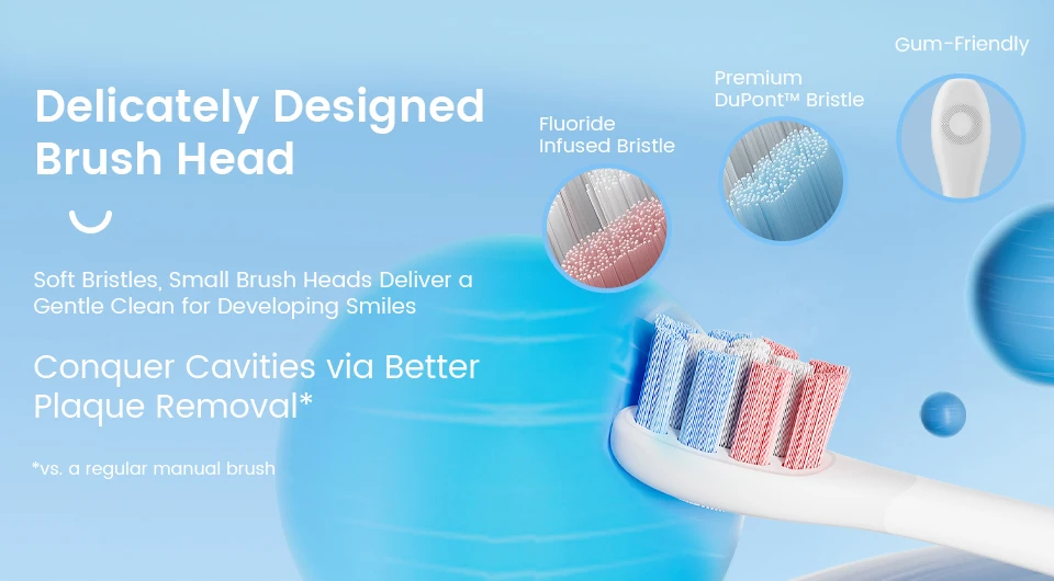 Soft bristles, Small Brush Heads Deliver a Gentle Clean for Developing Smiles