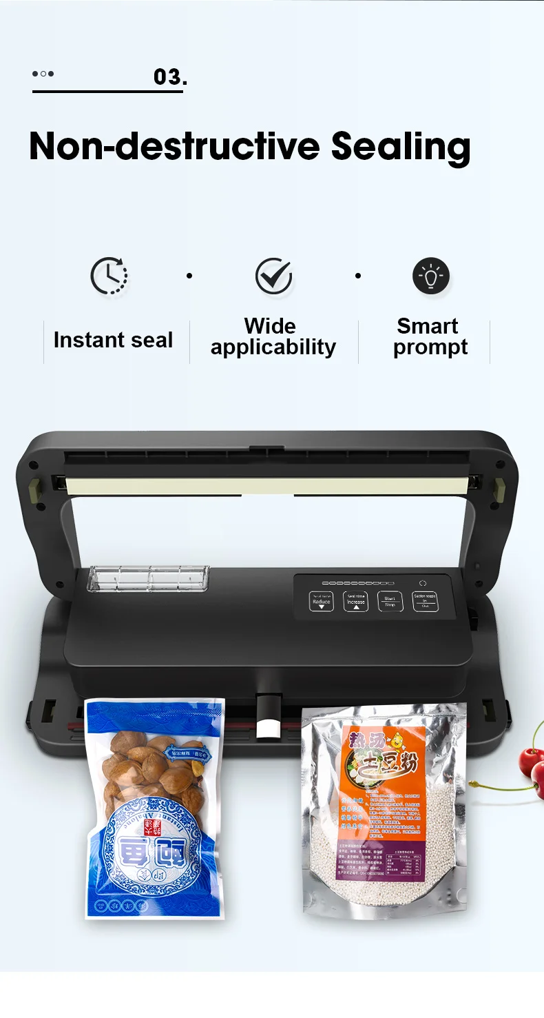 That is, press and seal, without starting the vacuum pump, nondestructive sealing alone, high efficiency, only 3 seconds
