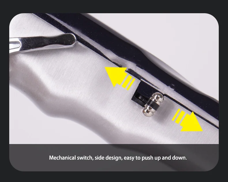 2, mechanical switch, side design, simple and convenient to push up and down.