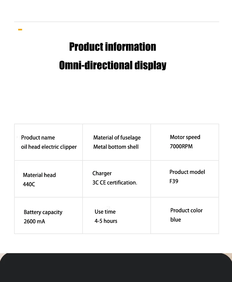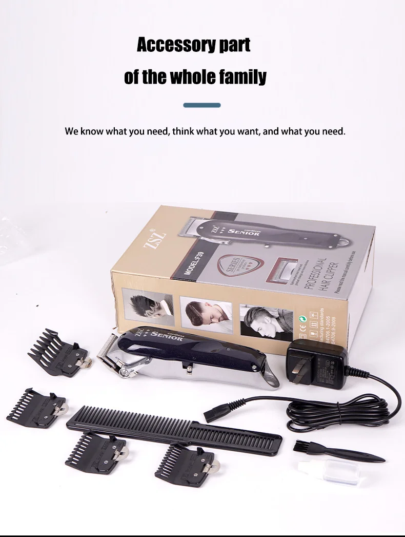 Package: F90 hair clipper *1 color packing box *1, limit comb *4, cleaning brush *1, charger *1 barber comb *1