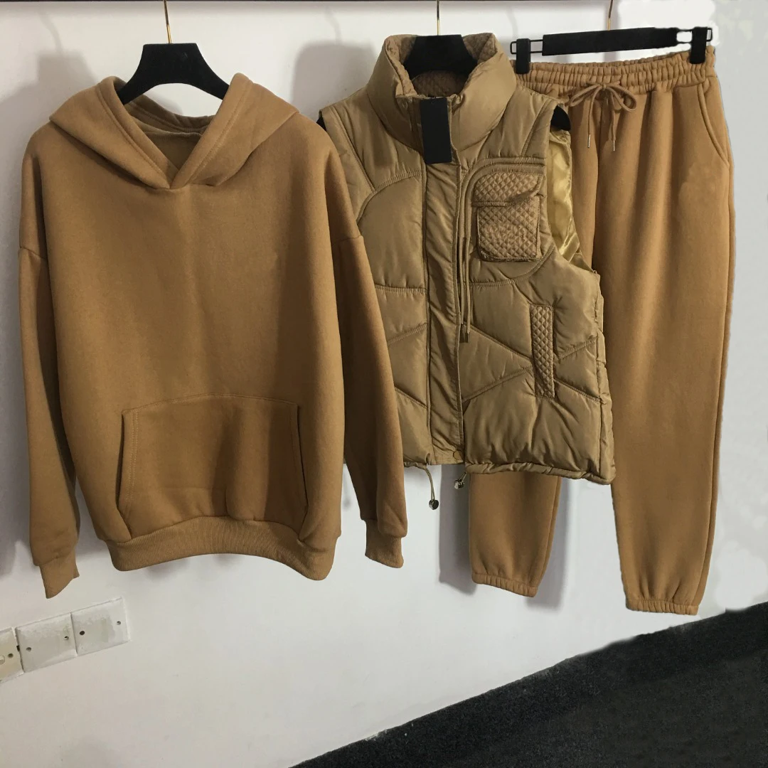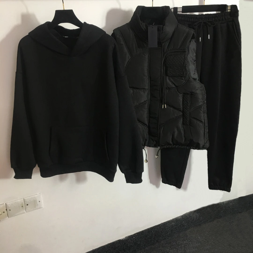 Winter new loose stand-up collar short down cotton vest, 3-piece thickened and velvet