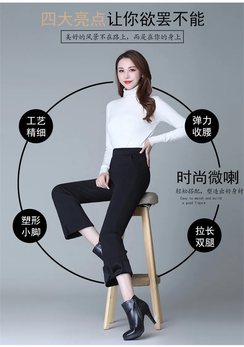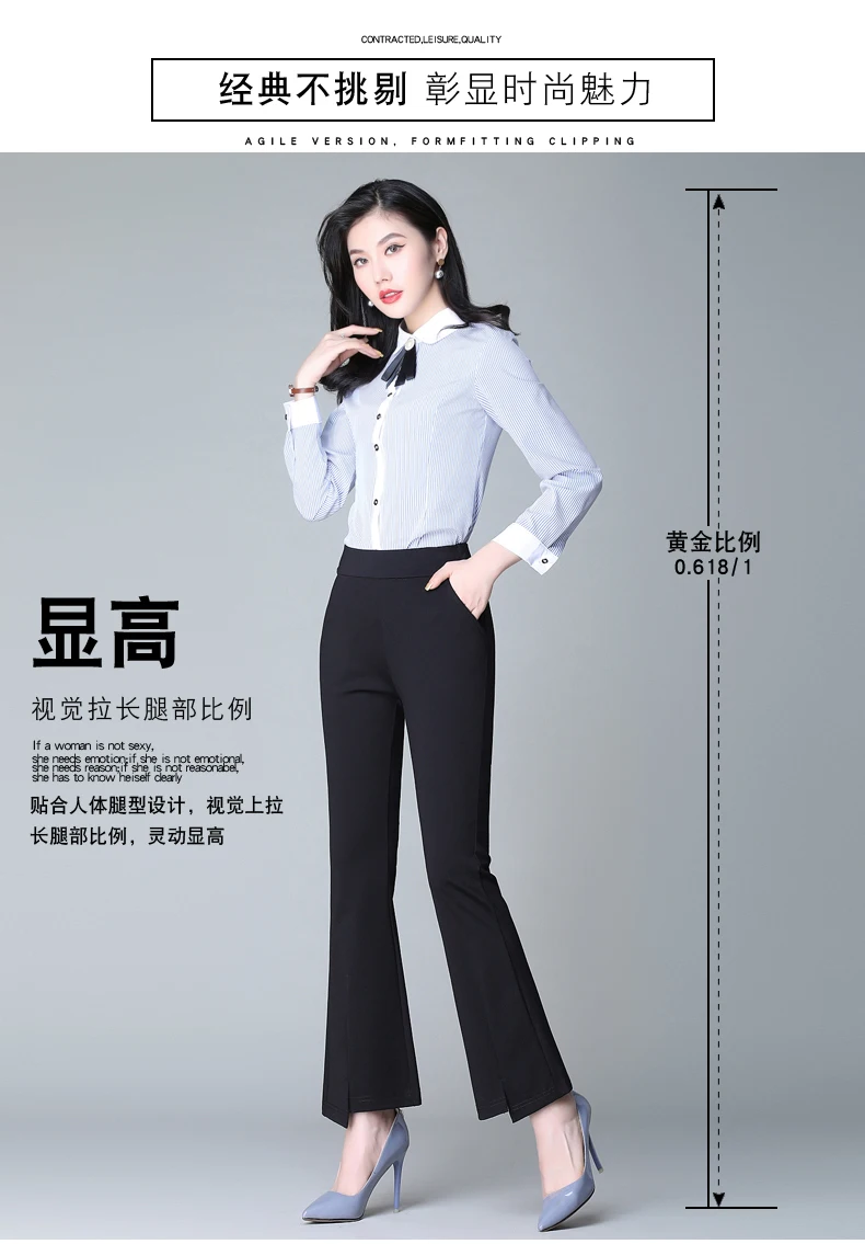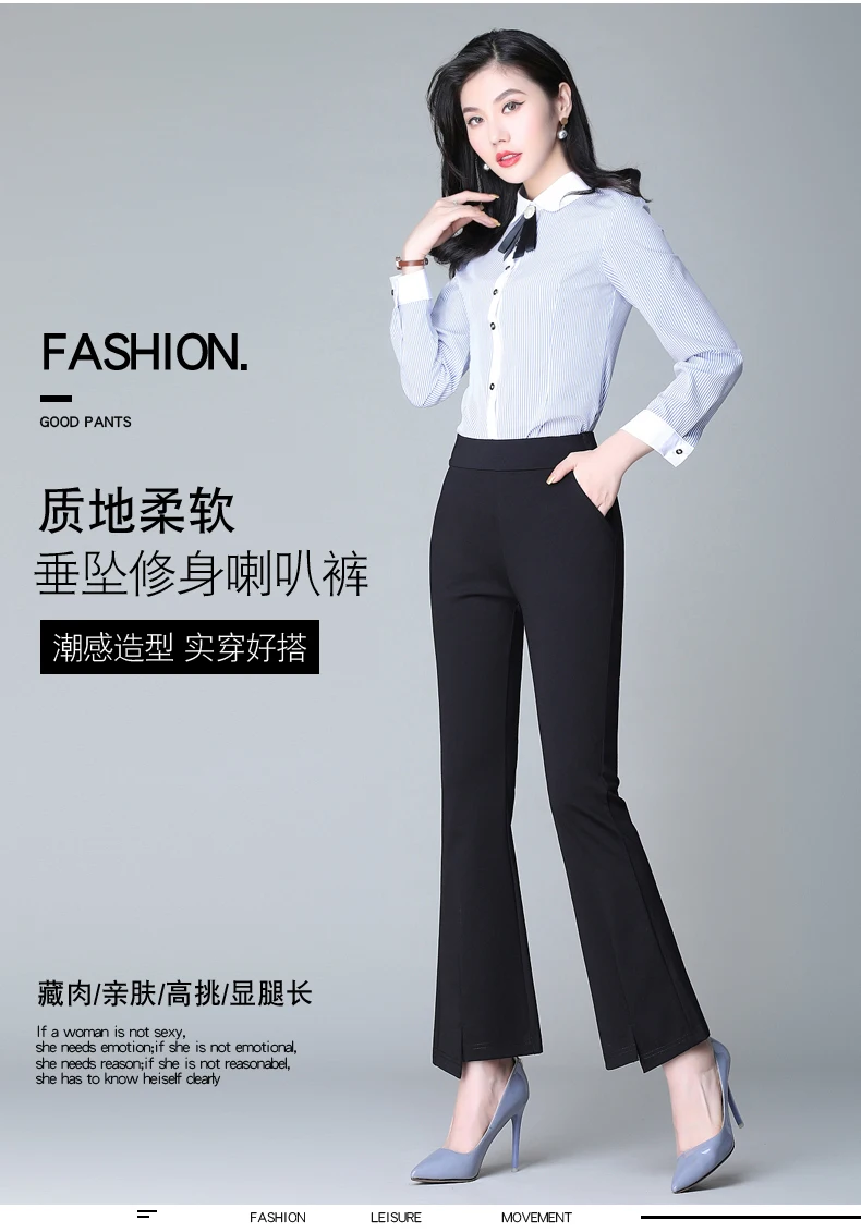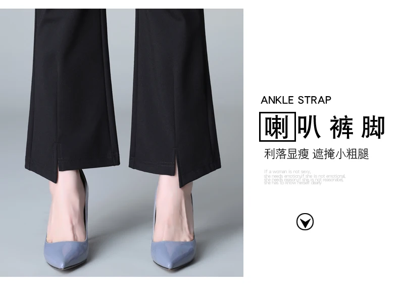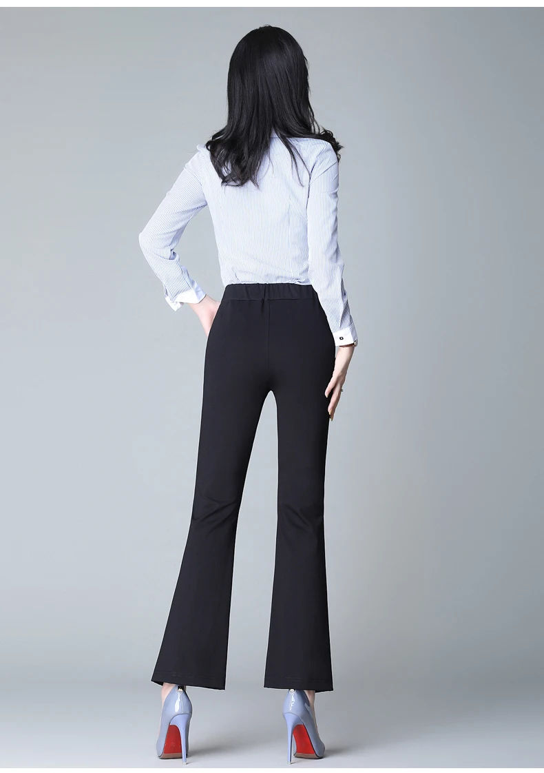 • 022 black slim stretch flared pants for women in spring and autumn, high waist and slim flared pants, thin split flared pants in