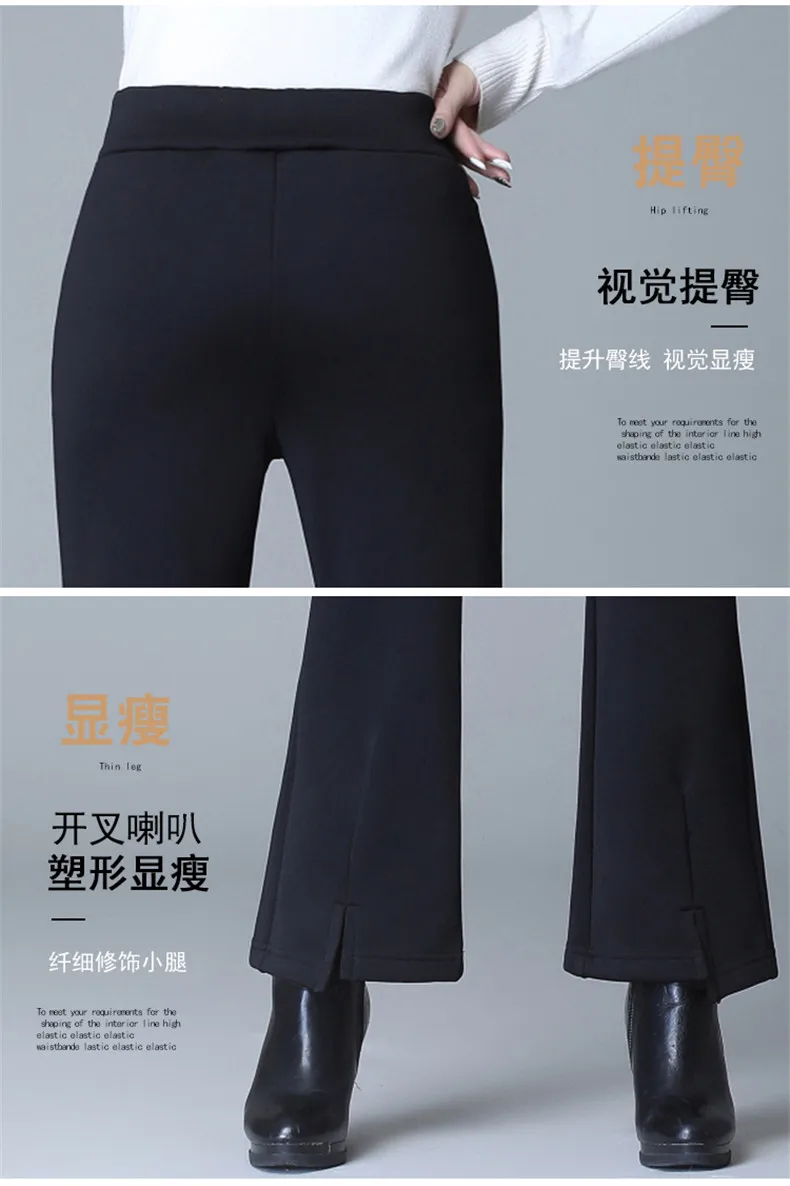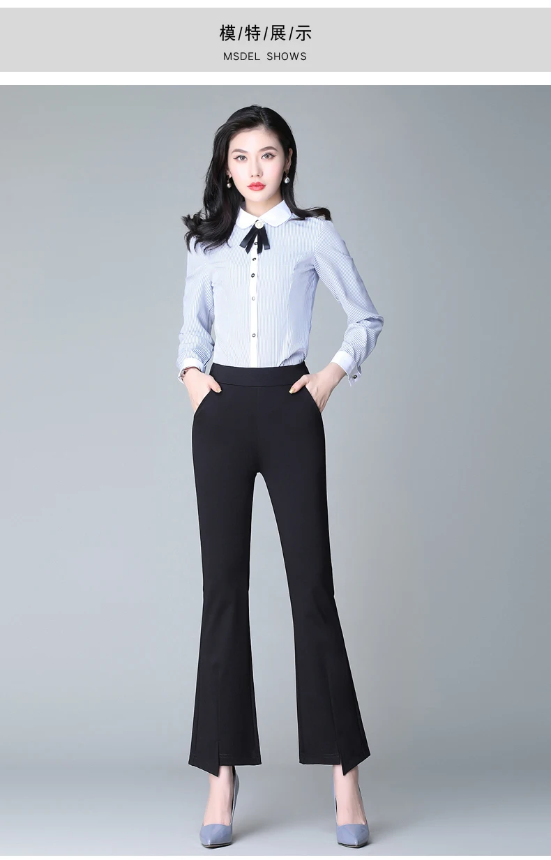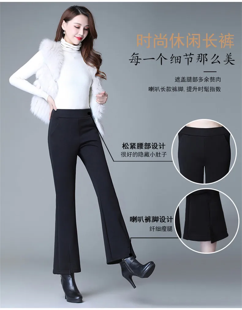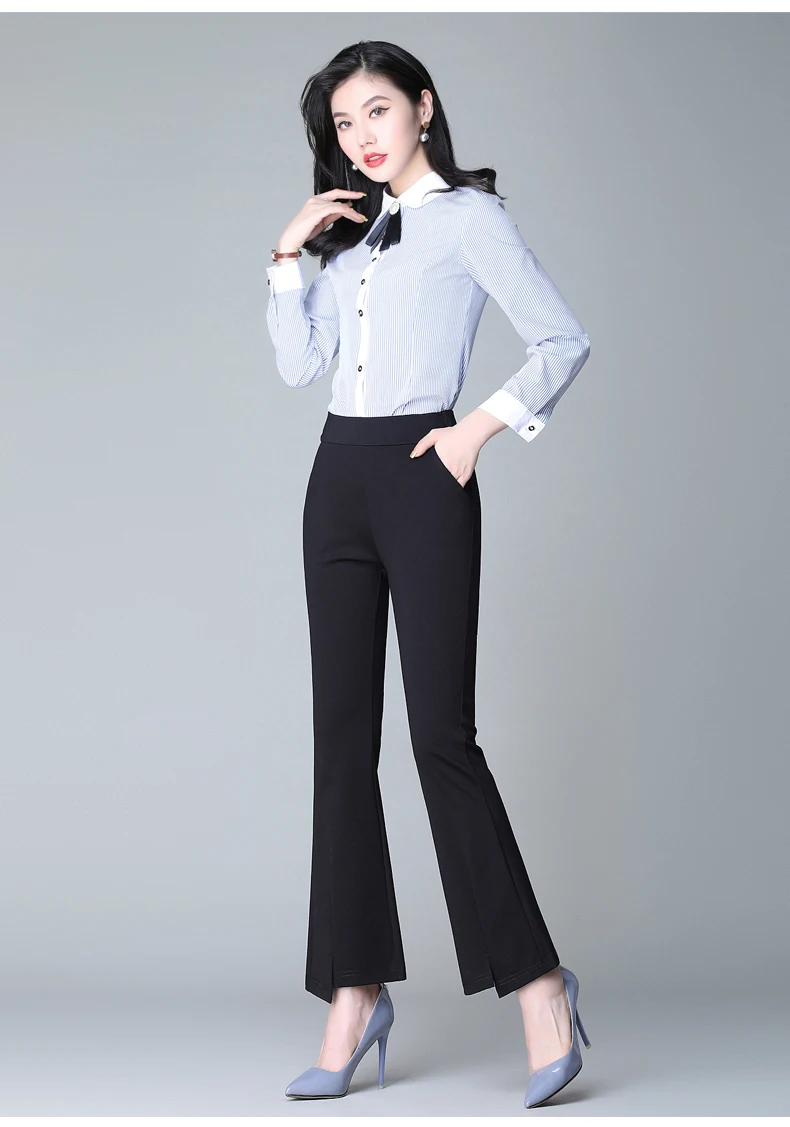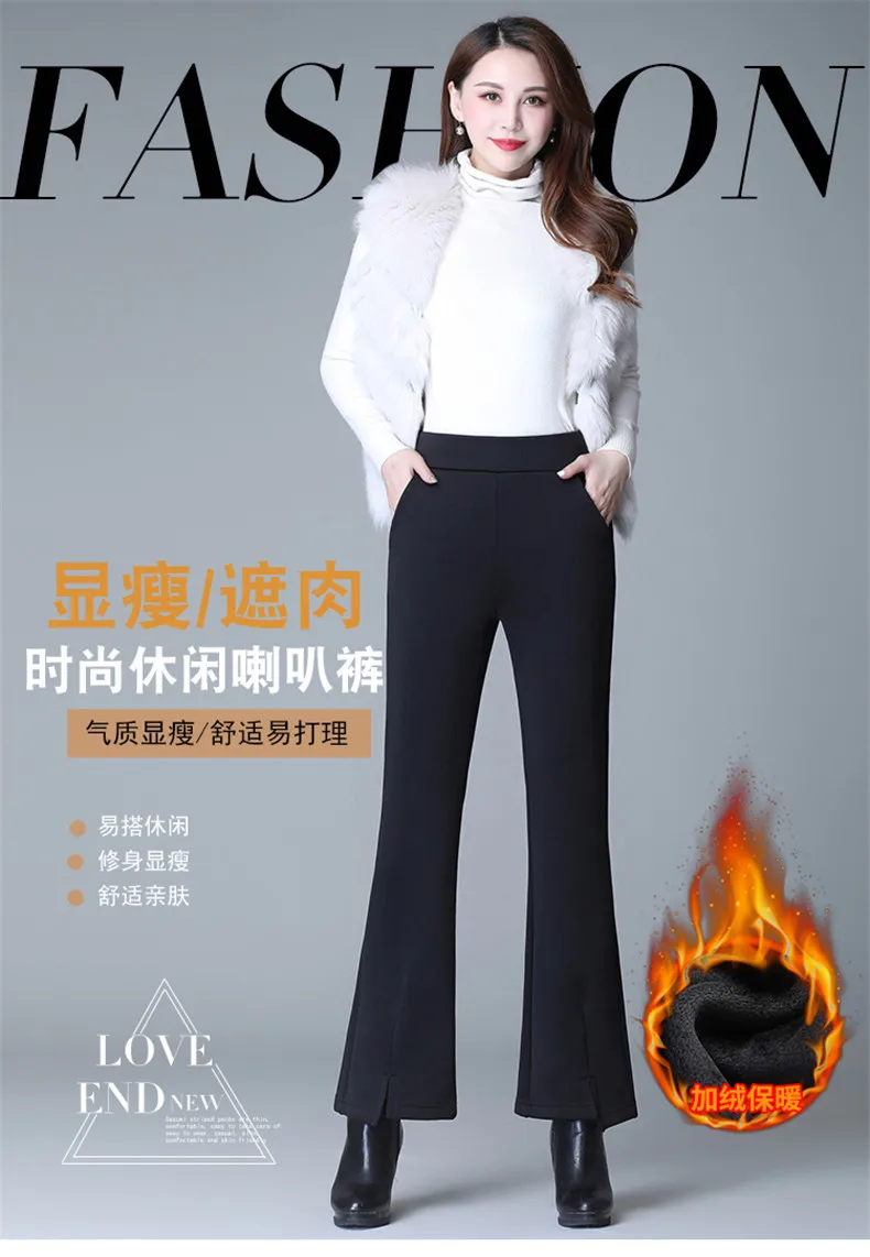 • 022 black slim stretch flared pants for women in spring and autumn, high waist and slim flared pants, thin split flared pants in
