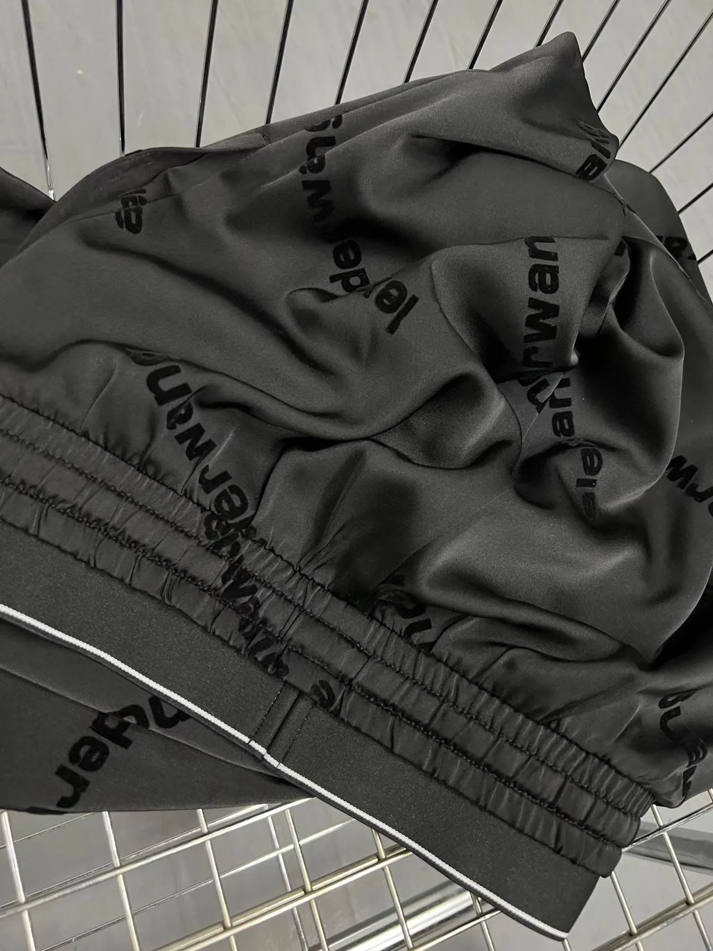 • 22FW New Flocking Printed Letter Webbing Drawstring High Waist Wide Leg Pants All-match Thin Women's Casual Pants High Quality