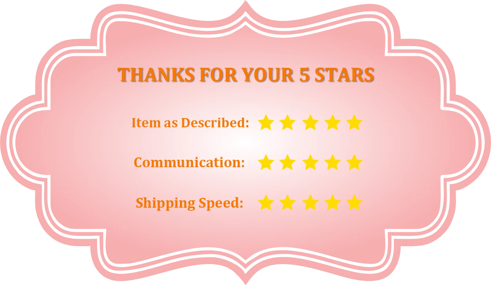5) guaranteed that all items are 100% in good condition and high quality. If you are not satisfied with an item for any reason, delivered free within 7 days after receipt, it will be replaced or returned. Any problem quality, offer refund for you.