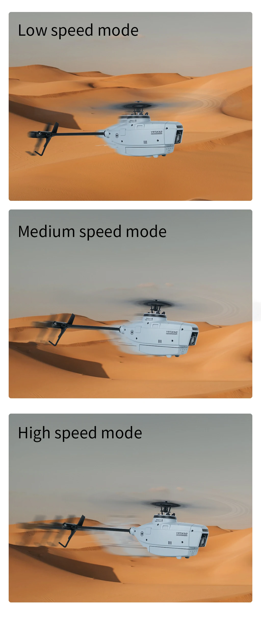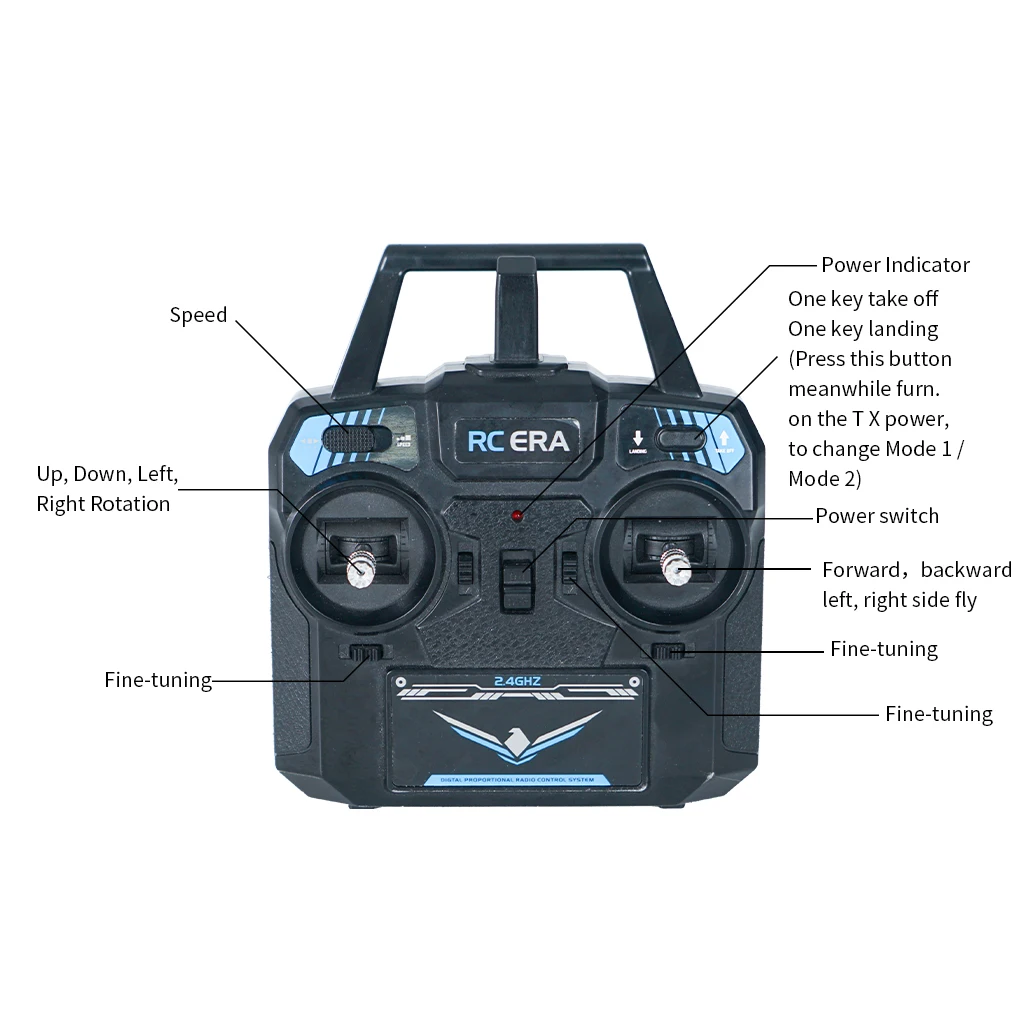 7. Low voltage alarm, locked rotor protection, runaway protection, large and small rudder volume conversion, one-key take-off, one-key landing and other functions;