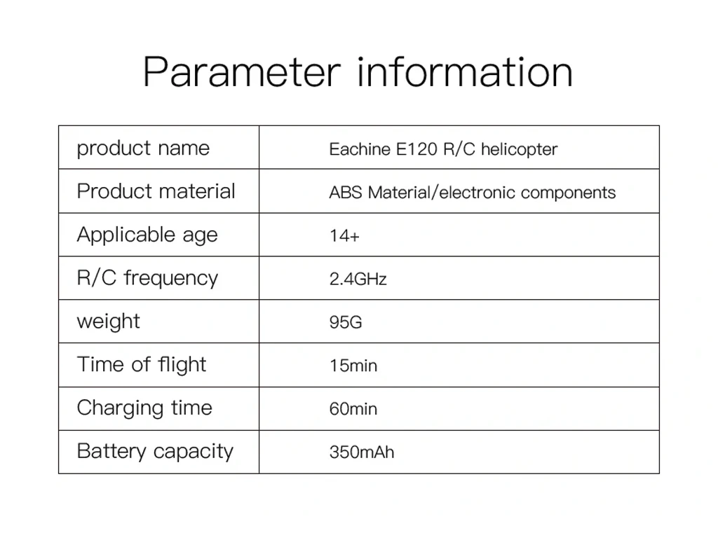 1. Aileronless design, the propeller is designed based on aerodynamic principles to provide strong power and self-stability of the body. Simple 4-channel design, ultra-stable flight with 6-axis gyroscope;