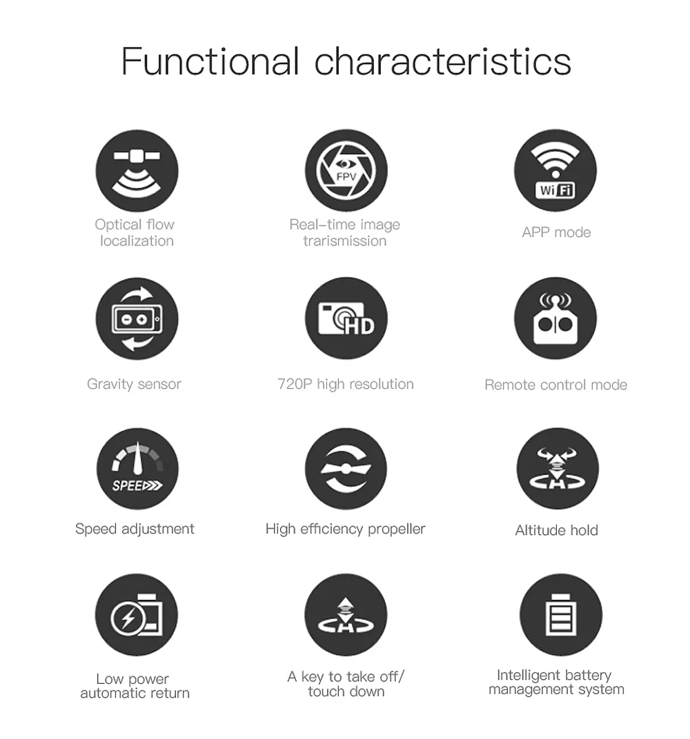 3.The 720P wide-angle camera, and the image transmission is clear (the remote control helicopter and the optical flow positioning are used for the first time).