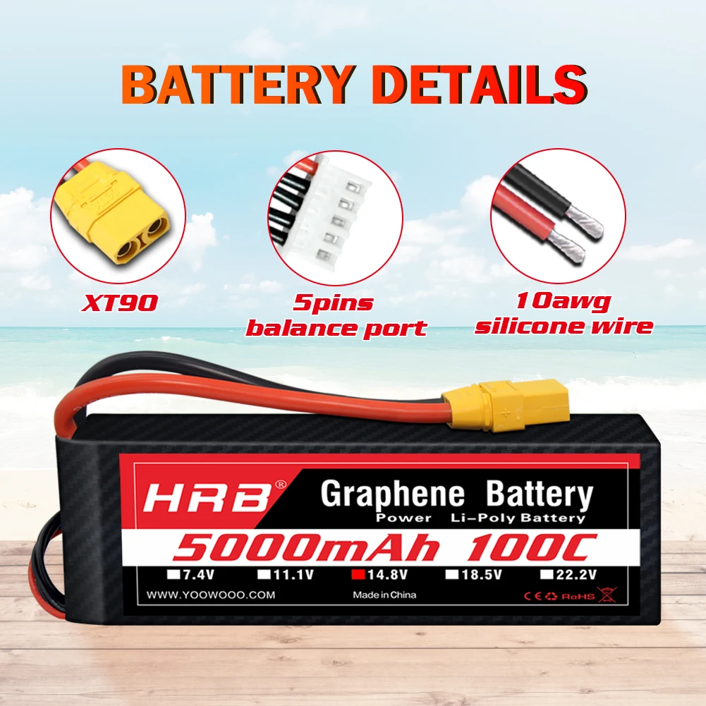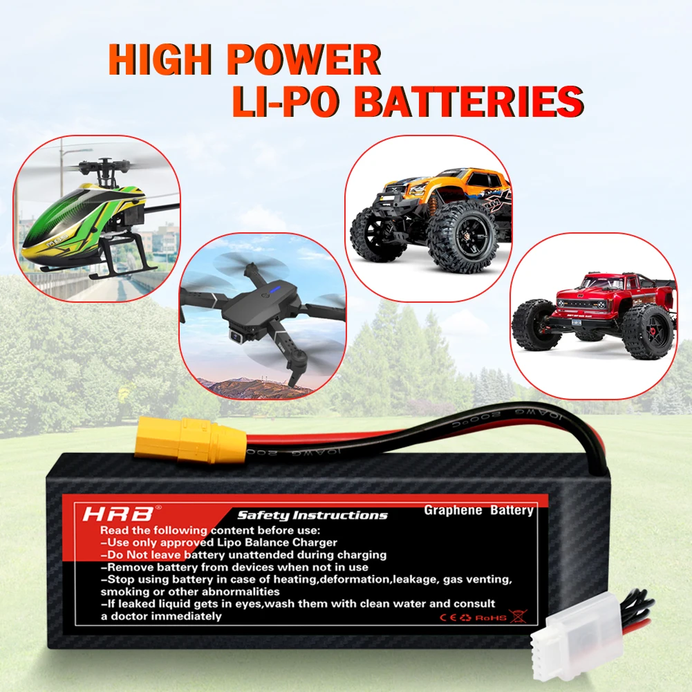 HRB 2S 3S 4S 6S 5000mah Graphene Battery100C RC Lipo Battery XT90 EC5 XT150 Plug for RC Car Truck helicopter Drone Airplane Boat