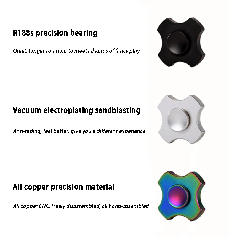 Metal Small Square Fidget Spinner Mini Elf Pure Copper Fingertip Gyro Decompression Stress Relief Autism Toy Adult Child Gift