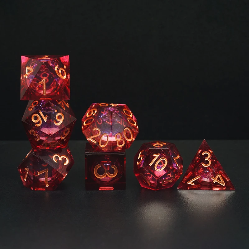 New Clear Liquid Core dice Sets DND Polyhedron Resin Handmade dice sharp dice Quicksand 7pcs