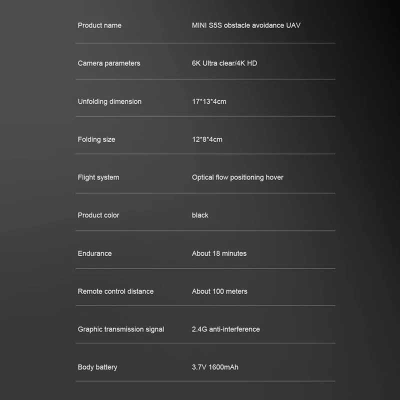 2. The height fixing function has the height keeping mode function, and the optical flow positioning and fixed-point function has stable flight.3. Ultra long endurance 3.7V 1600mAh Li ion battery, which can last about 18 minutes