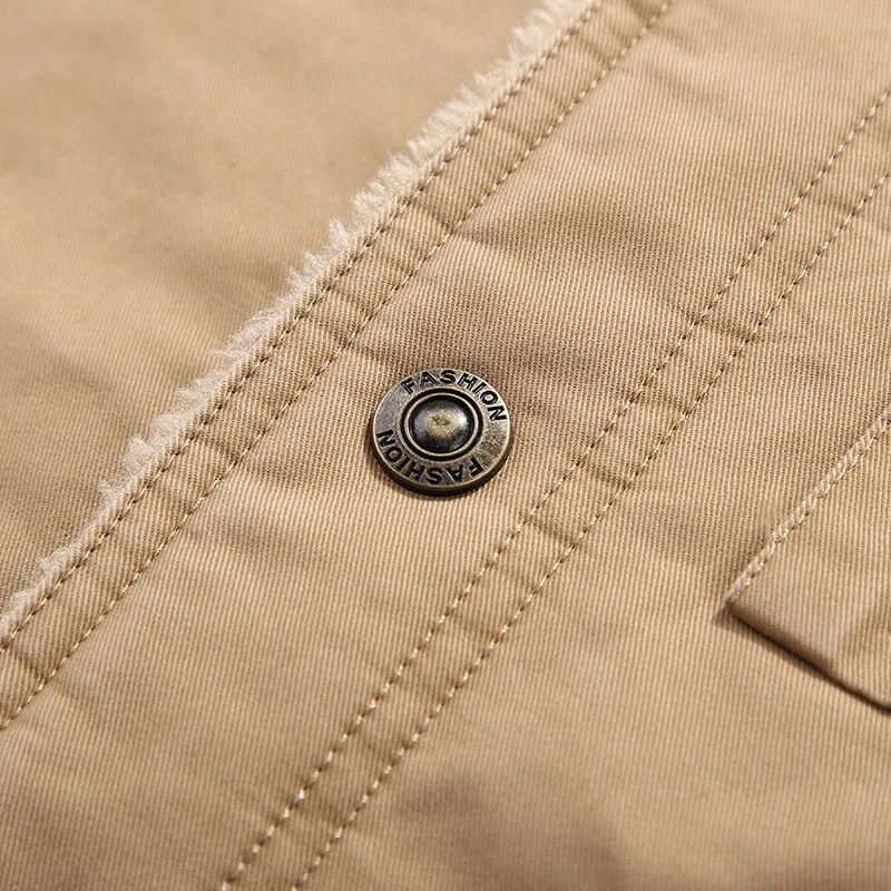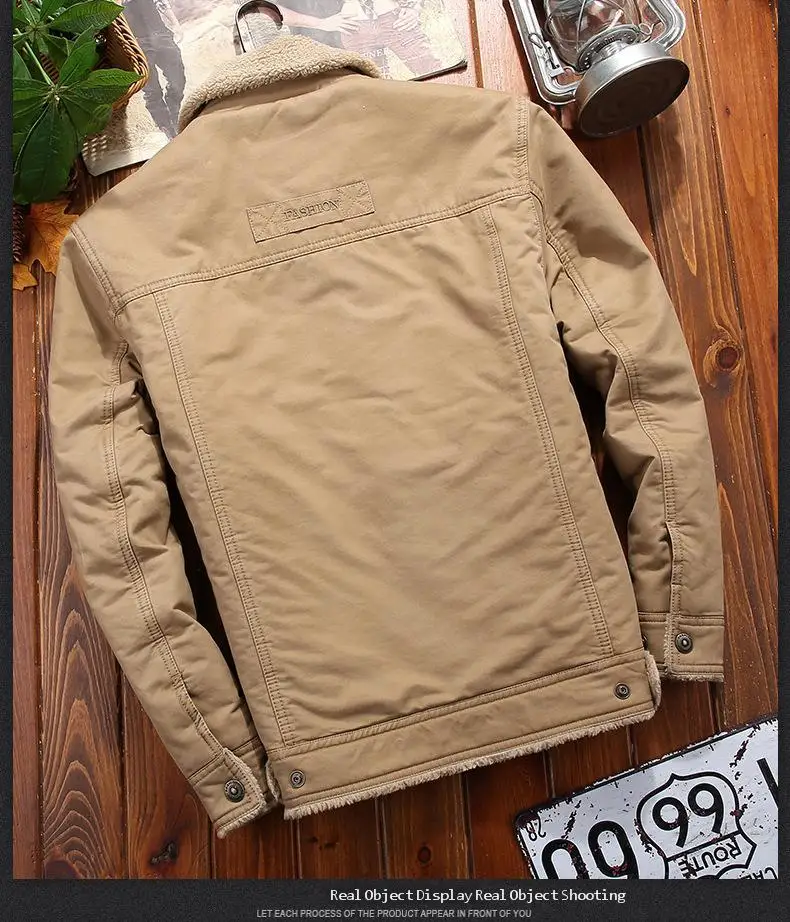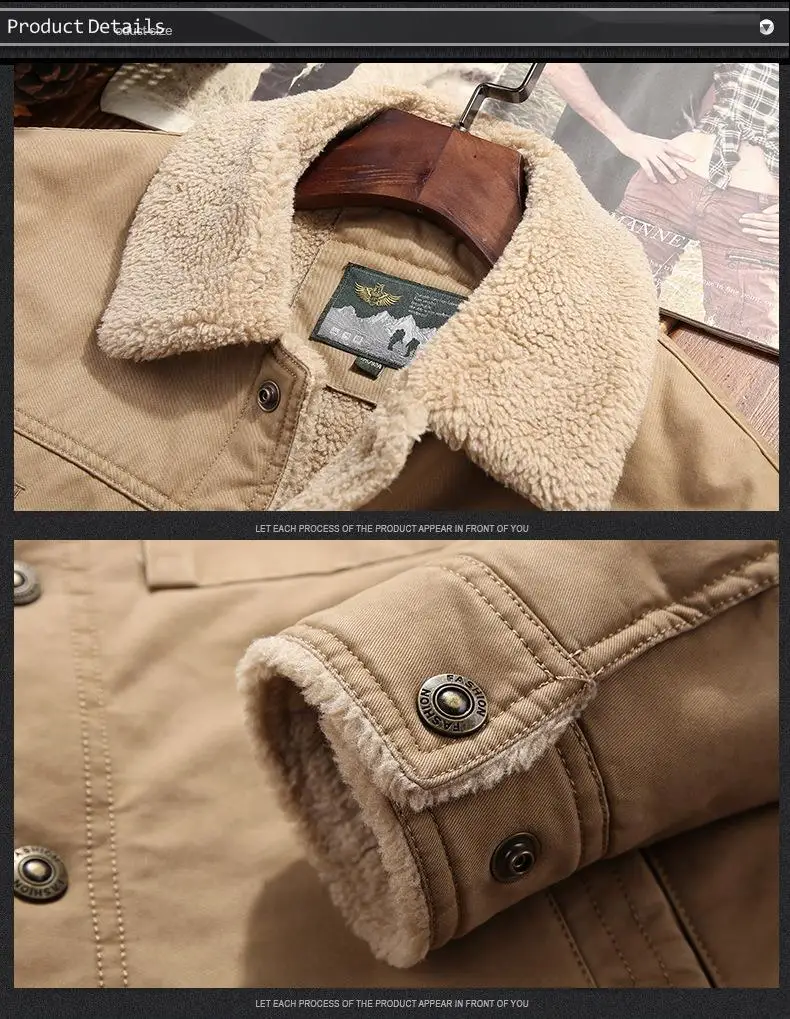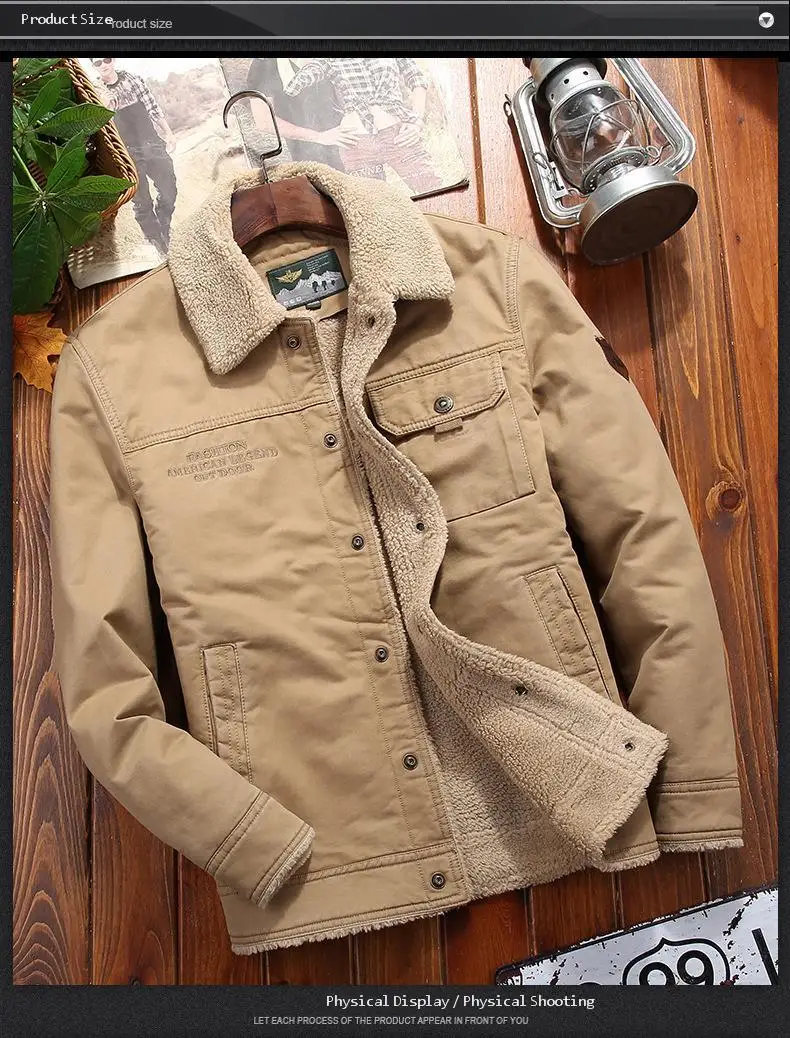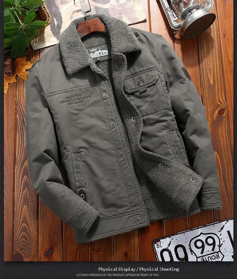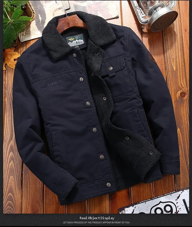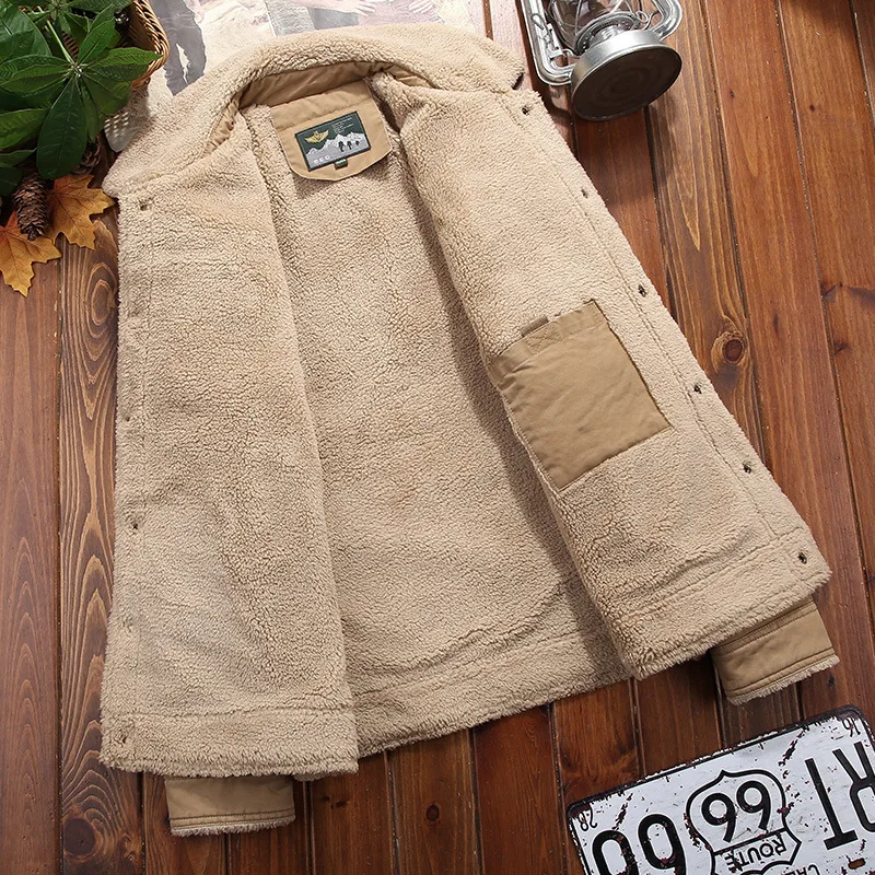 100%cotton Denim Winter Jacket Men New Fleece-lined Thickened Warm Men's Coat Casual Khaki Green Lamb Parka Men Trendy Jacket