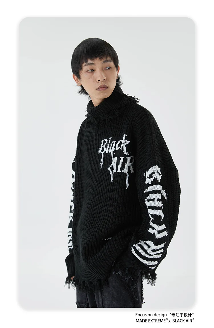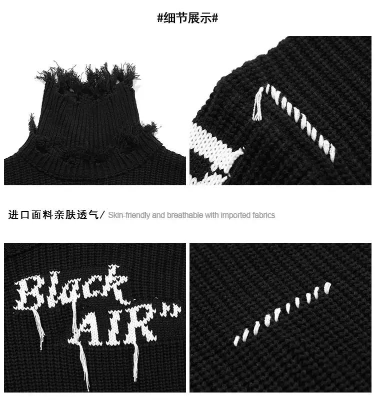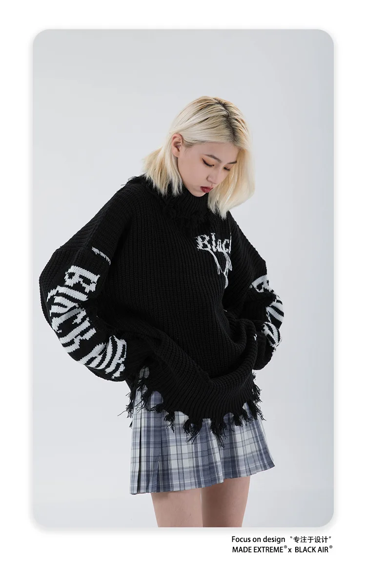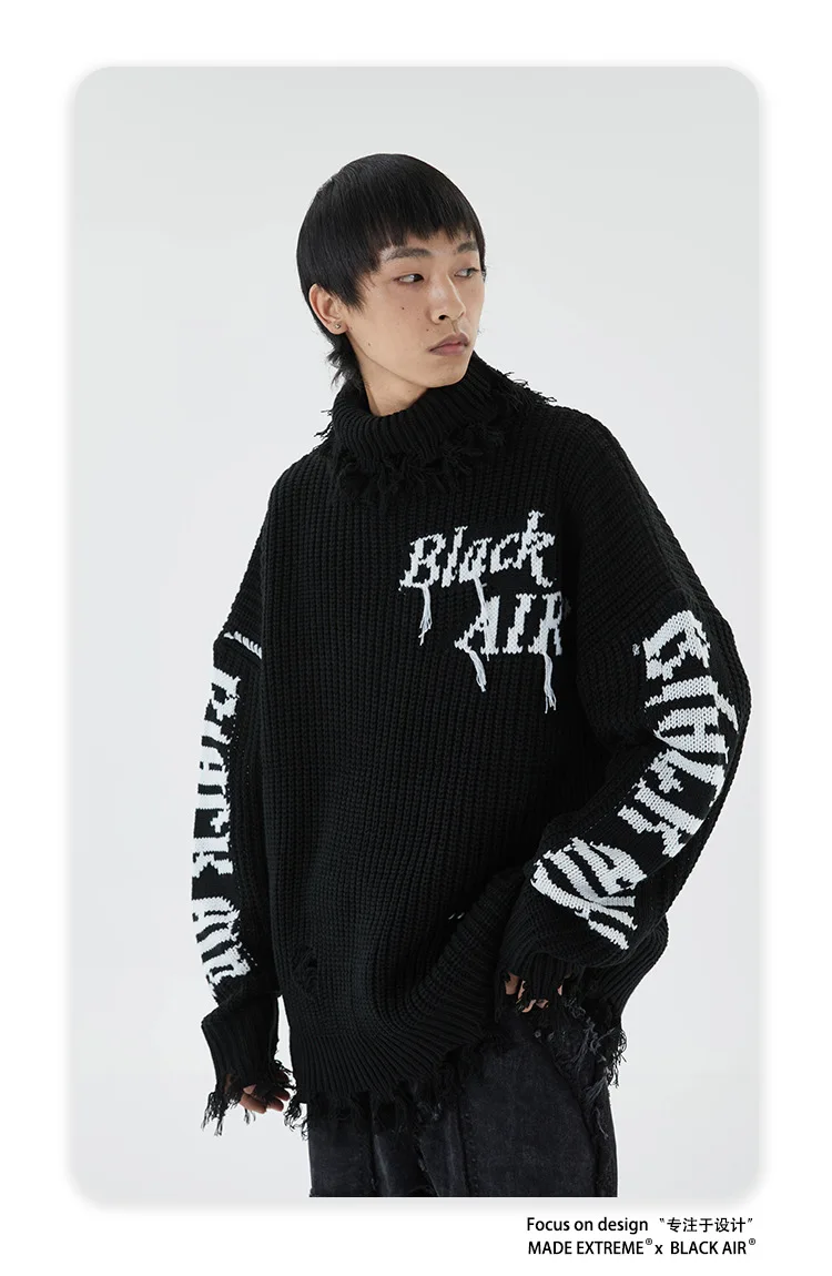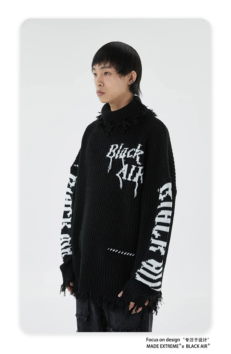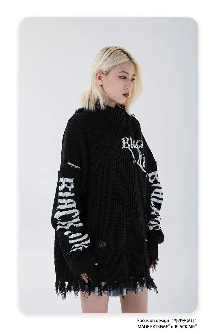 2021 Ripped Hole Punk Turtleneck Sweater Mens Harajuku Vintage Pullover Women Embroidery Hip Hop Goth Knitted Sweater Jerseys