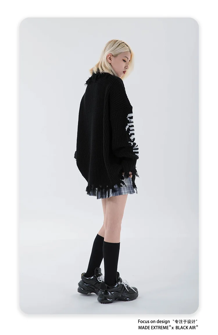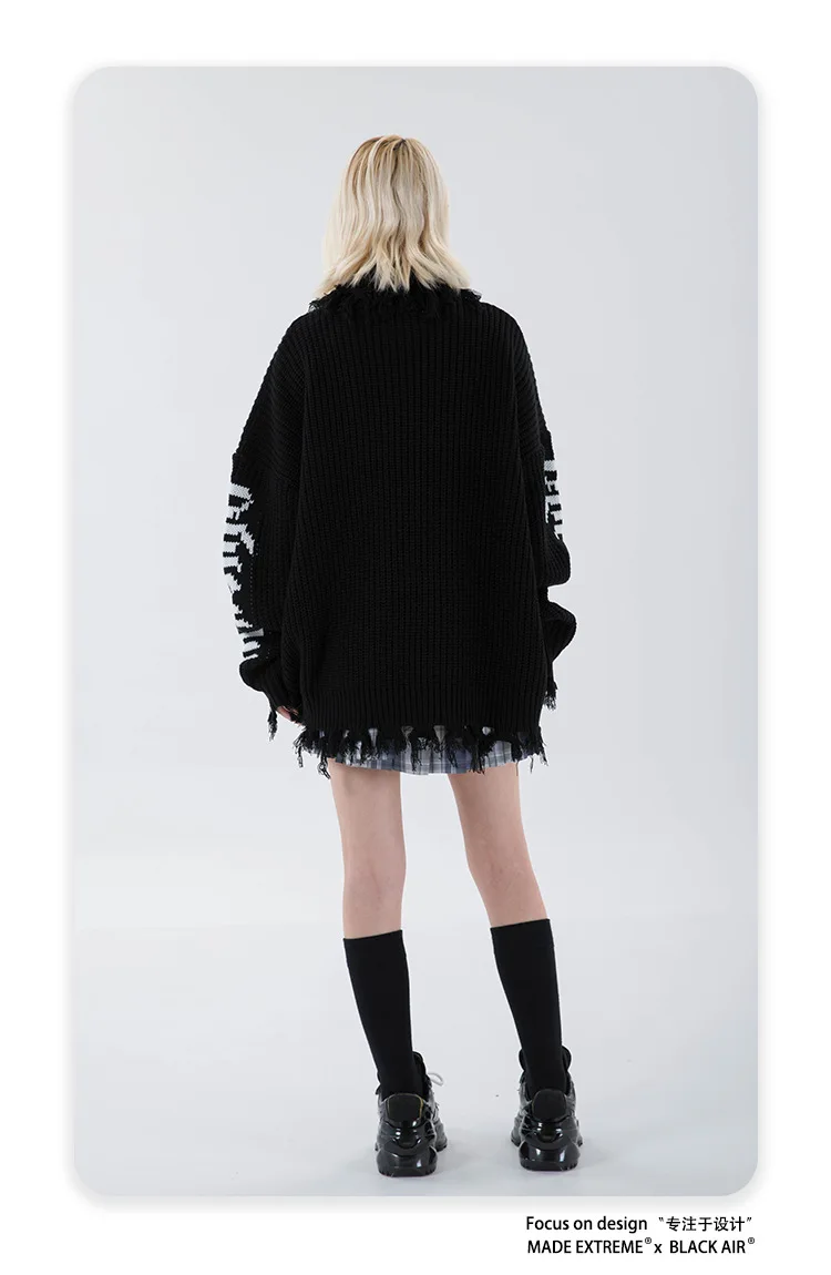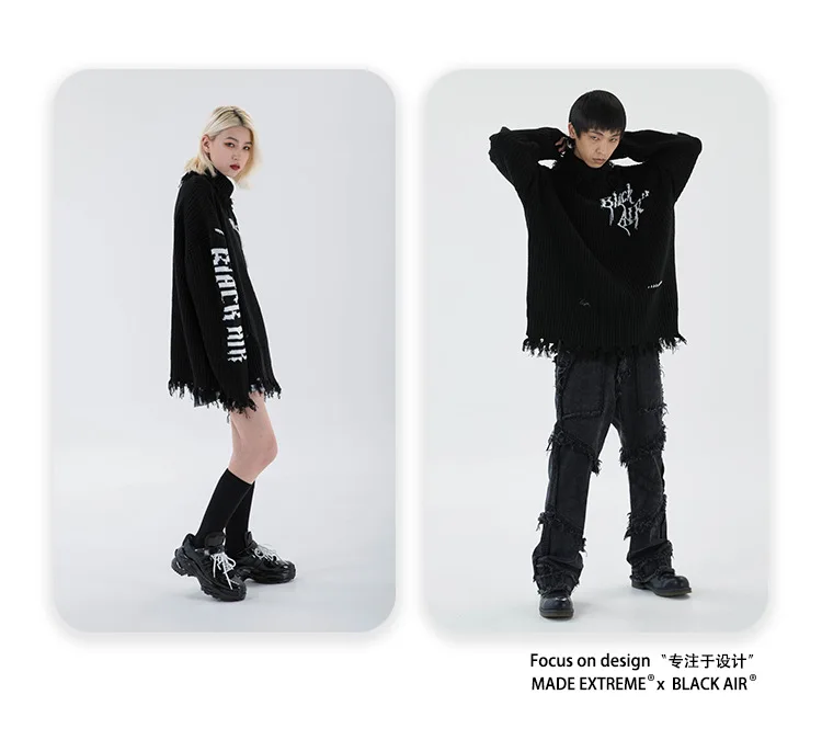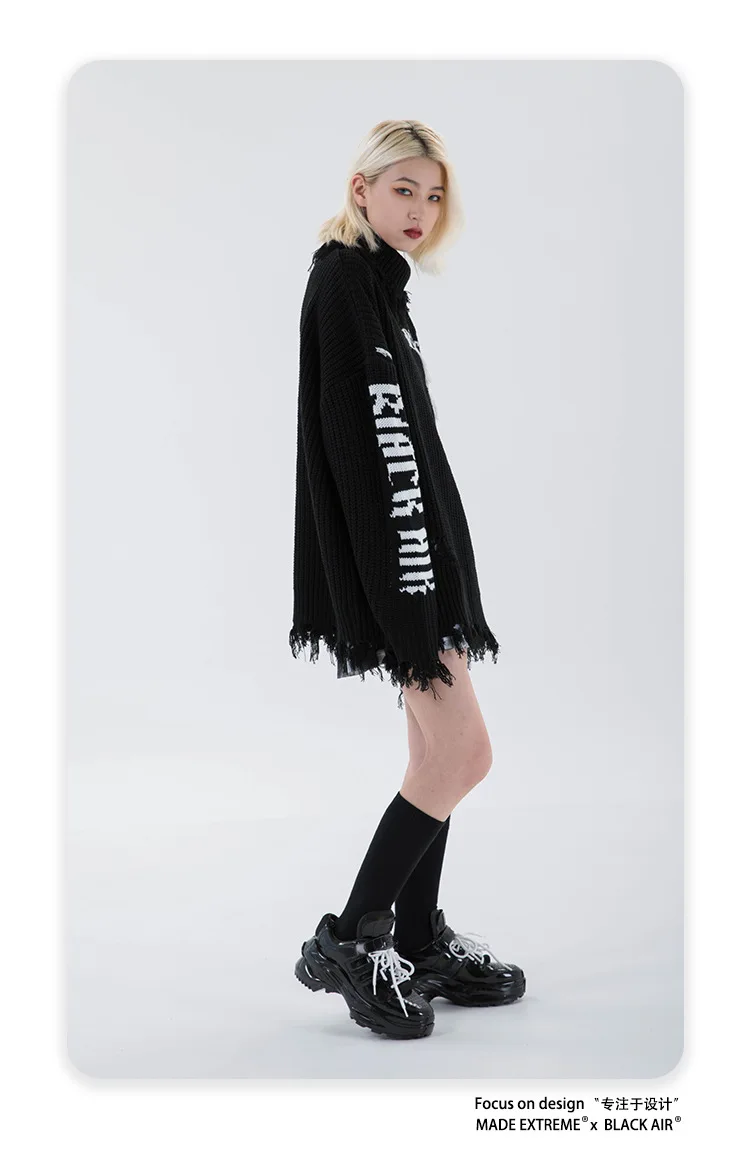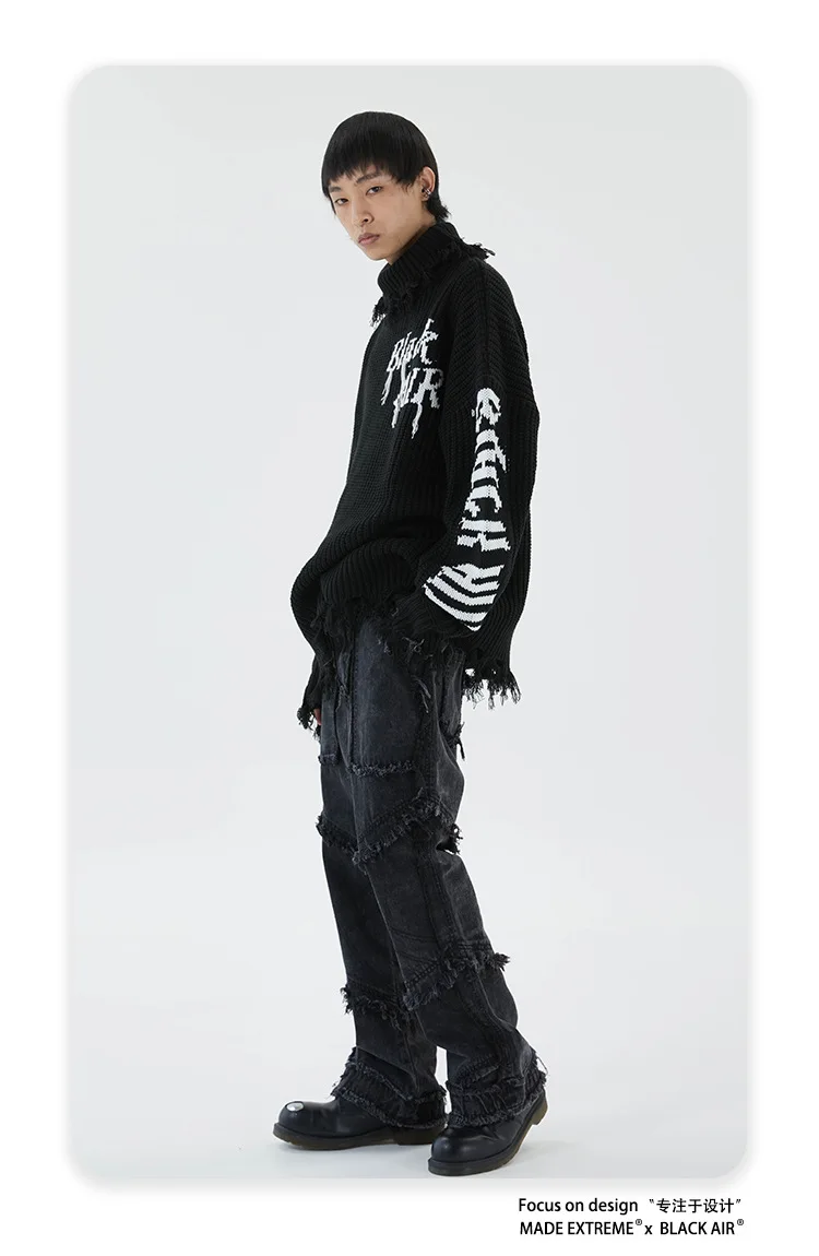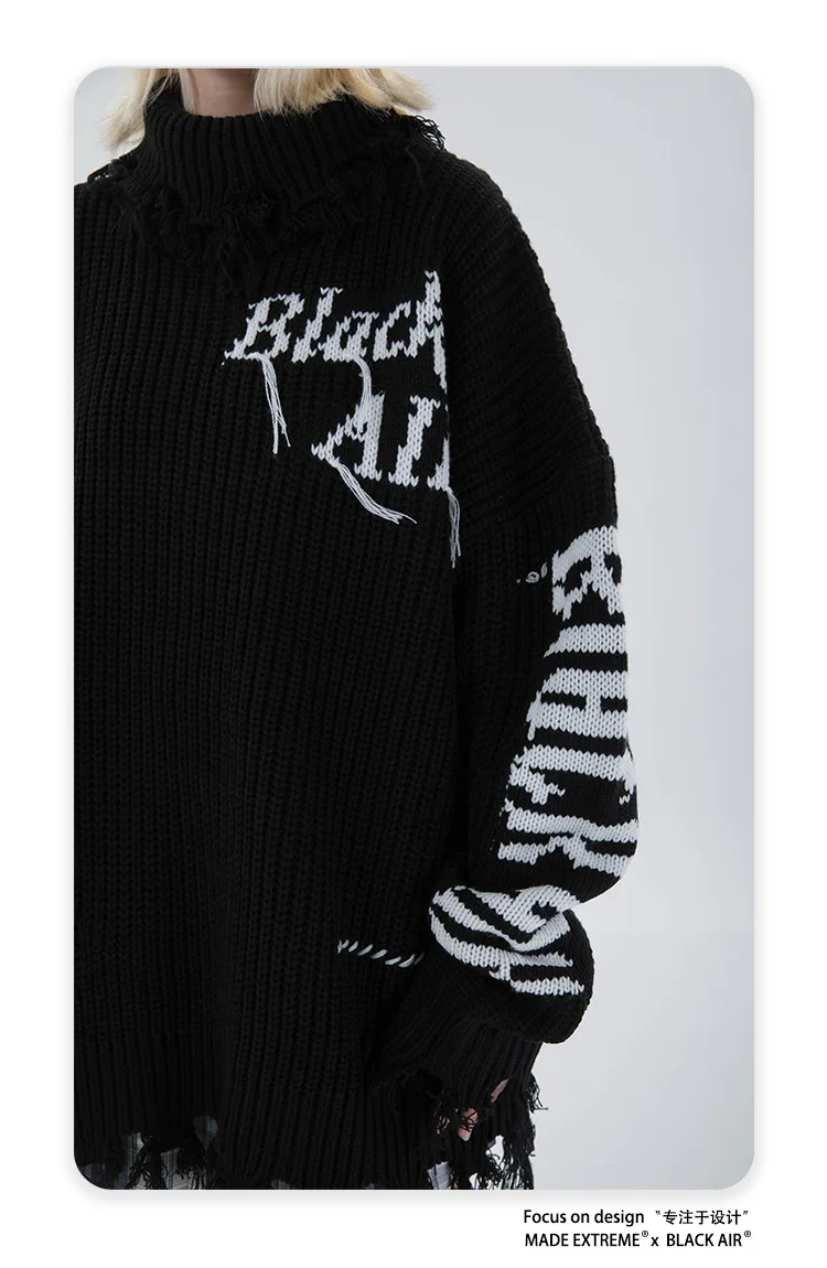 2021 Ripped Hole Punk Turtleneck Sweater Mens Harajuku Vintage Pullover Women Embroidery Hip Hop Goth Knitted Sweater Jerseys