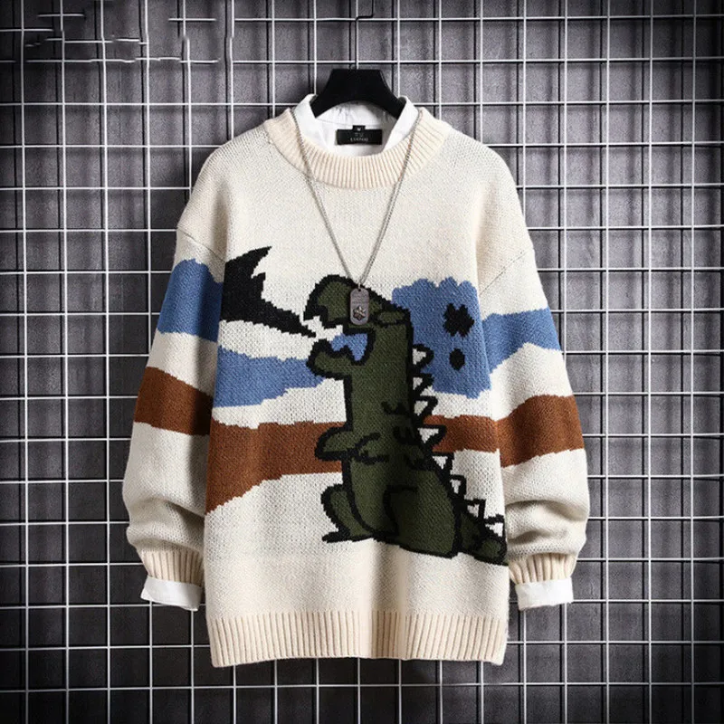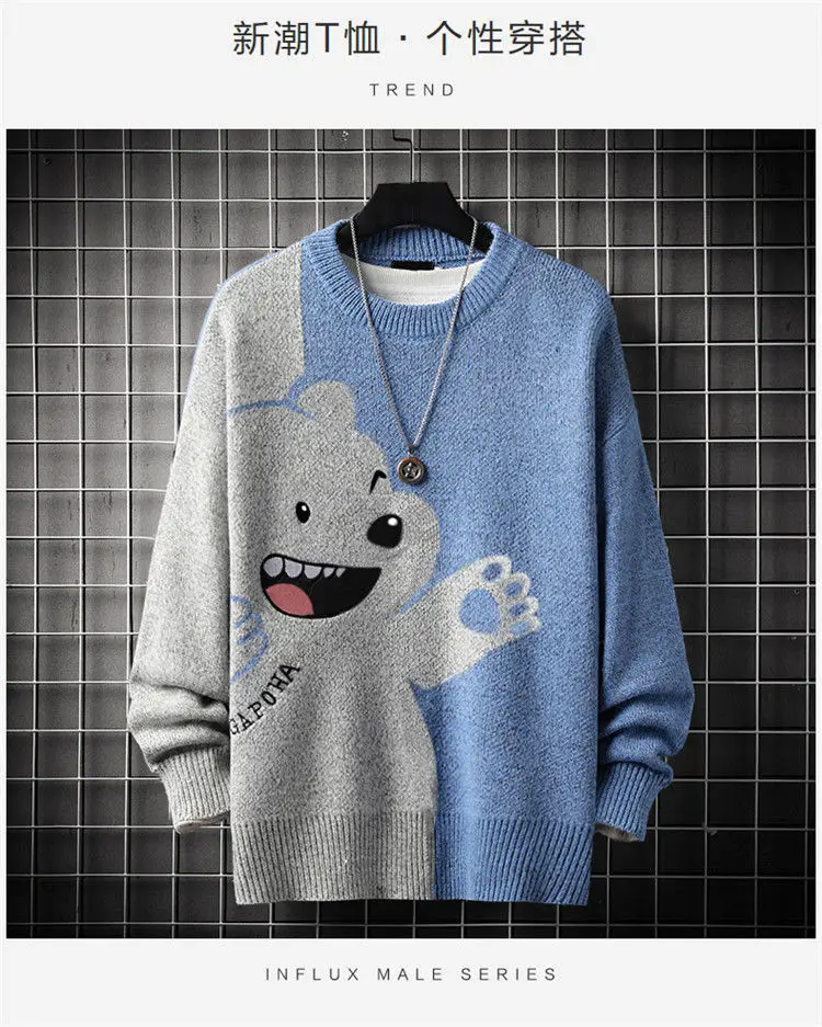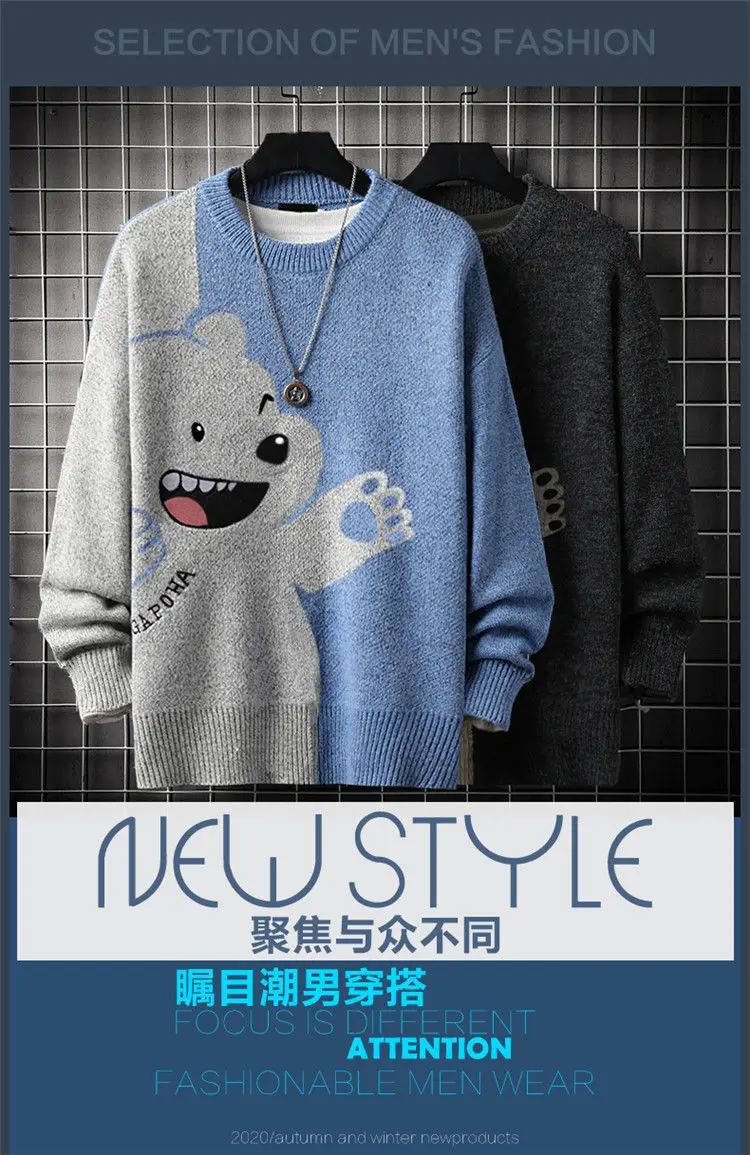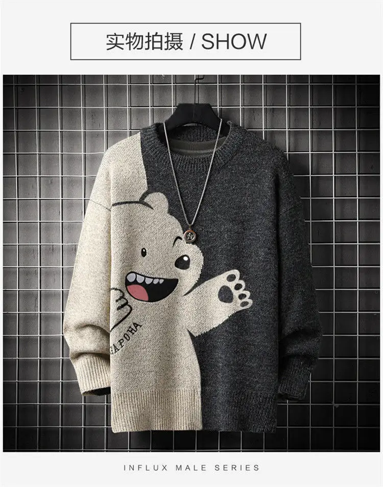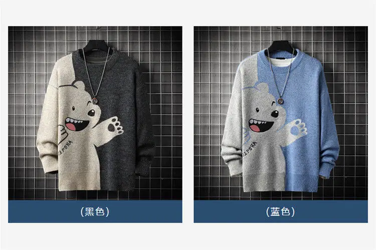 2021 Sweater Men Harajuku Knitted Pullover Hip Hop Streetwear Cartoon Bear Sweater O-neck Oversize Casual Couple Male Sweaters