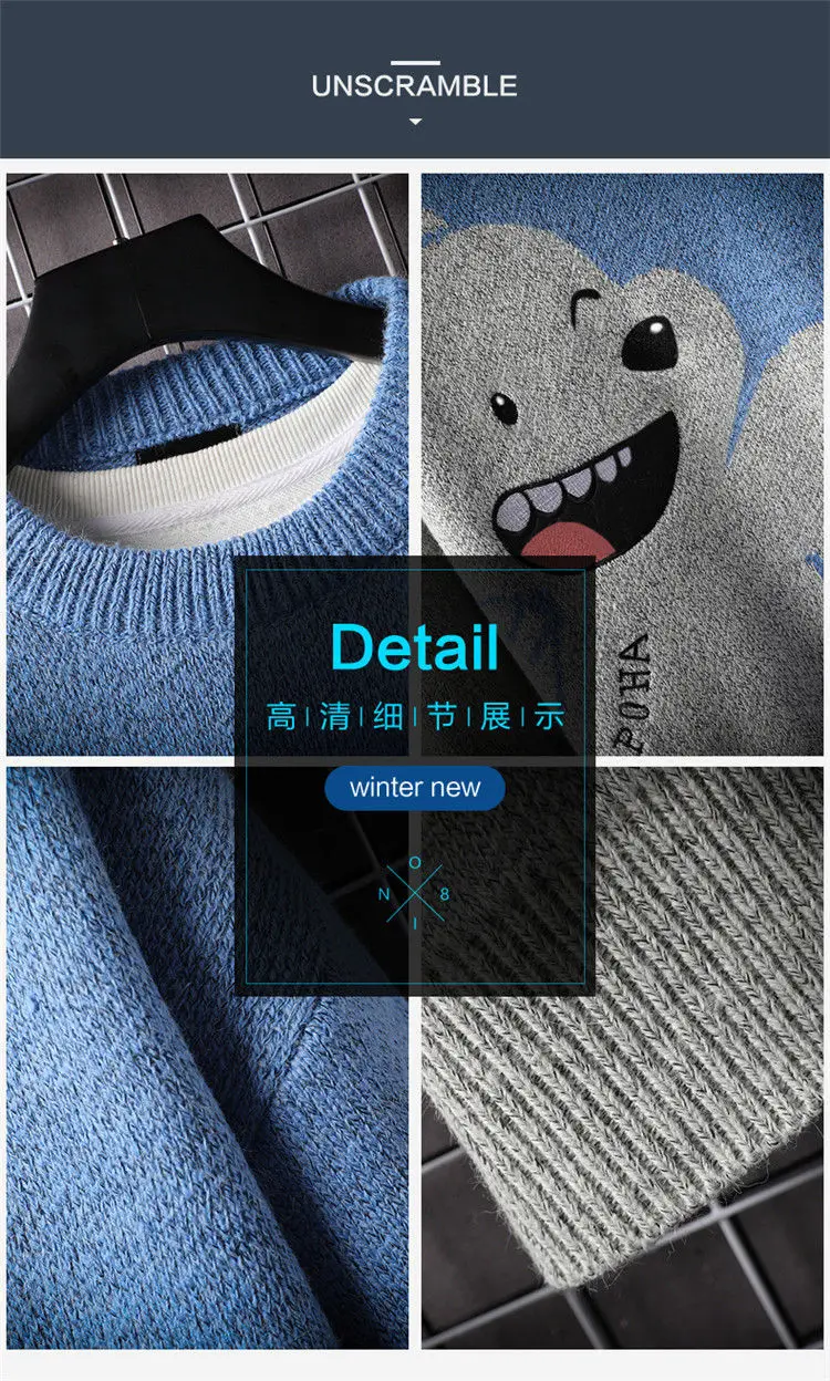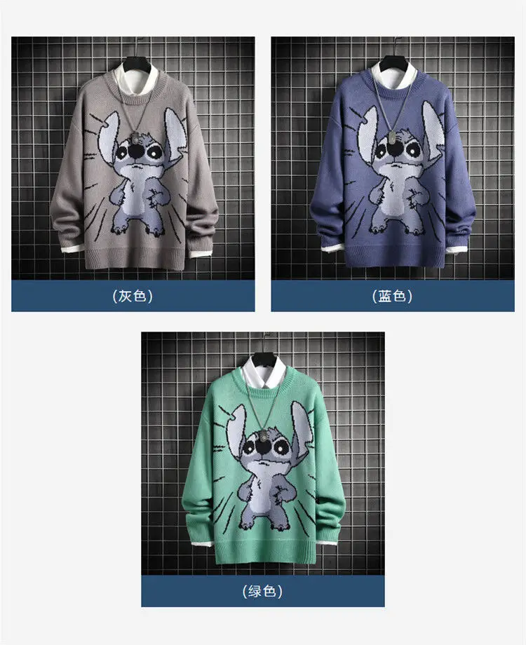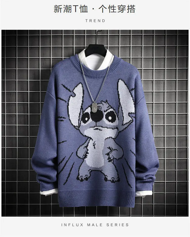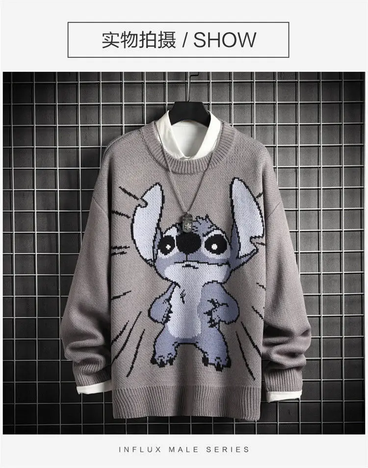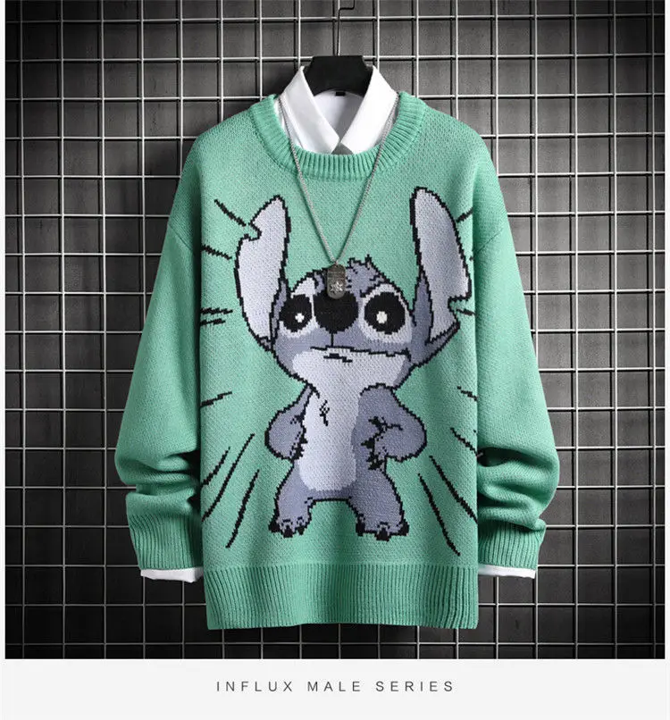 2021 Sweater Men Harajuku Knitted Pullover Hip Hop Streetwear Cartoon Bear Sweater O-neck Oversize Casual Couple Male Sweaters