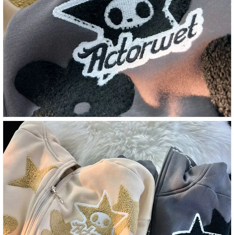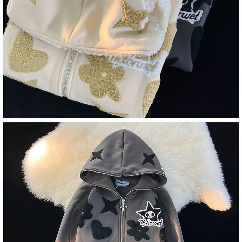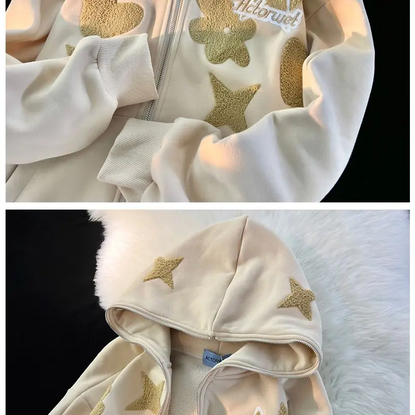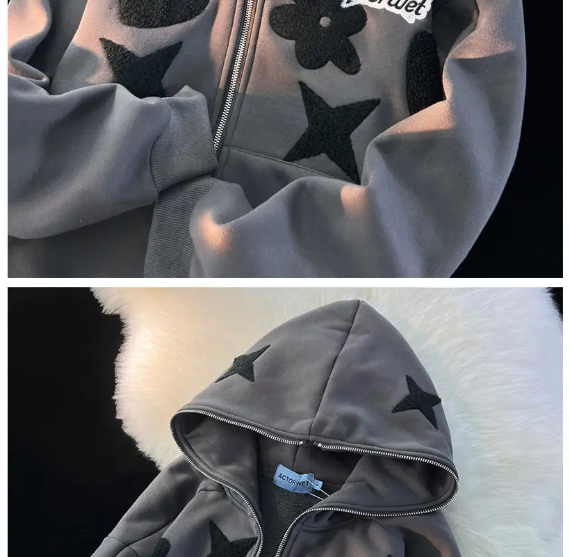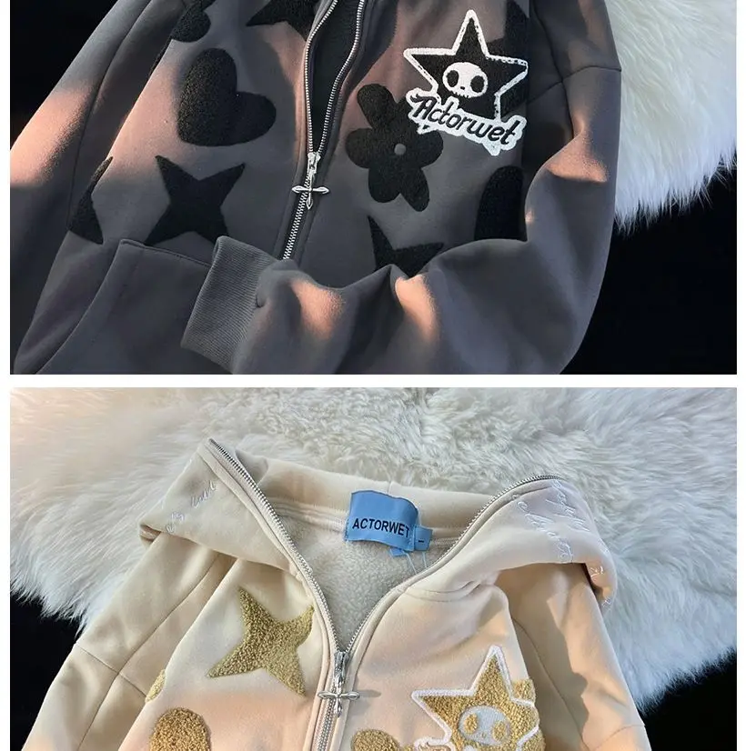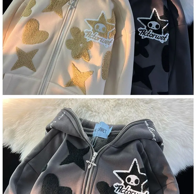 2022 new American high street retro jacket women Y2K autumn and winter loose casual fleece thickened couples wild hoodie jacket