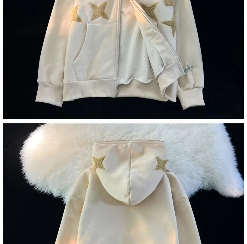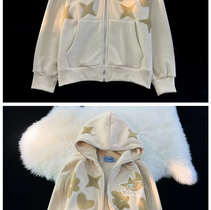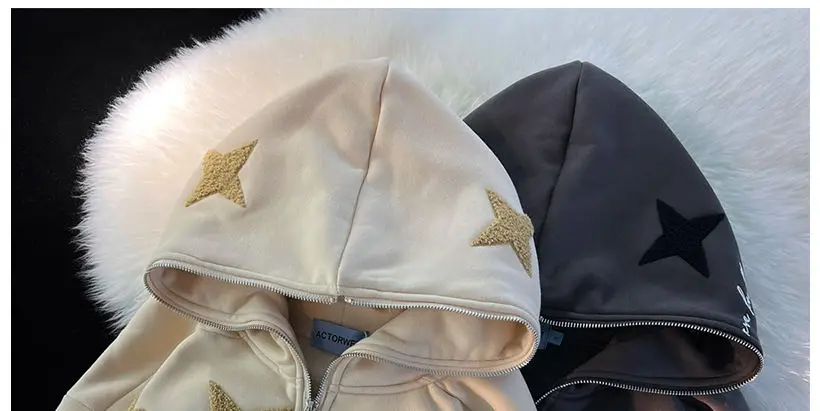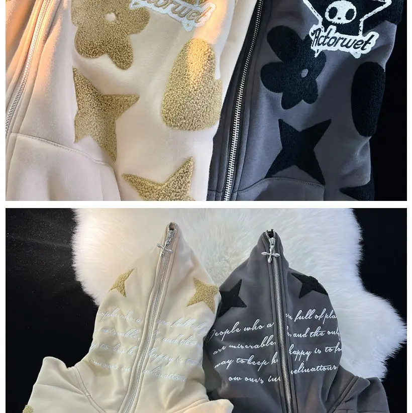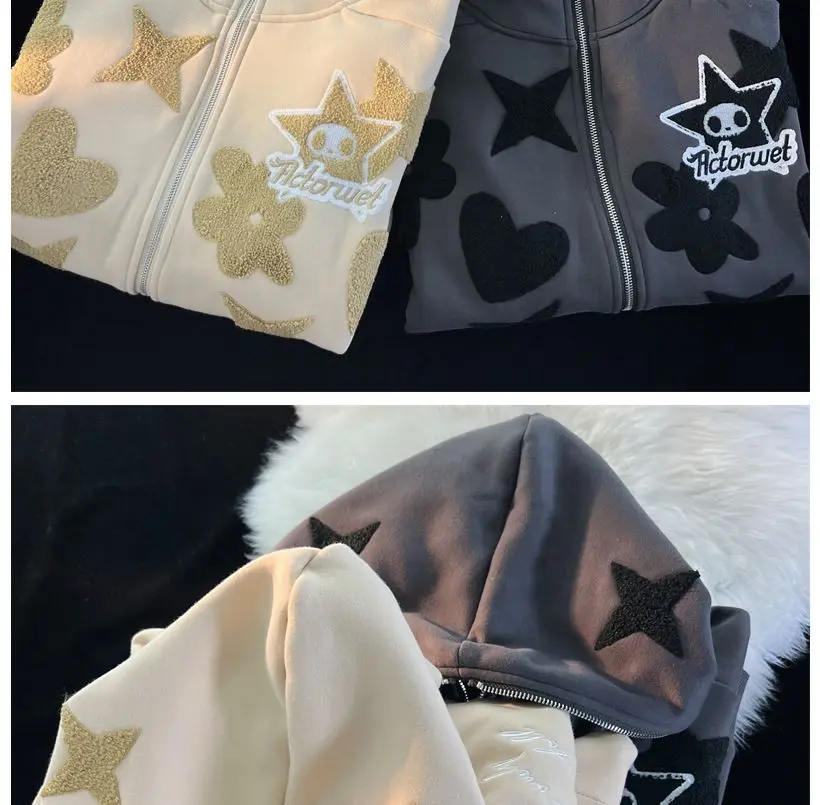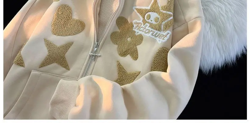 2022 new American high street retro jacket women Y2K autumn and winter loose casual fleece thickened couples wild hoodie jacket