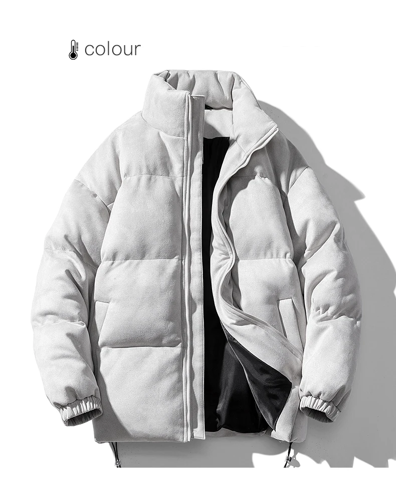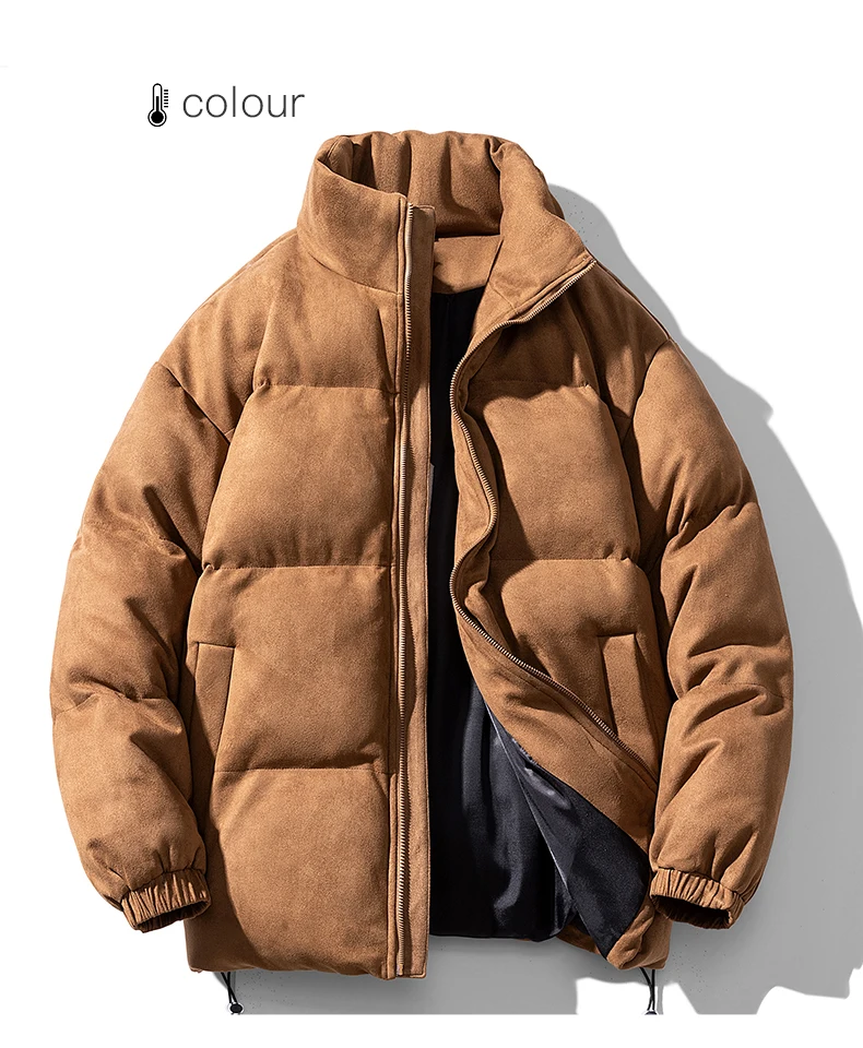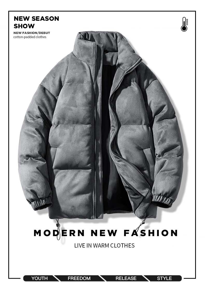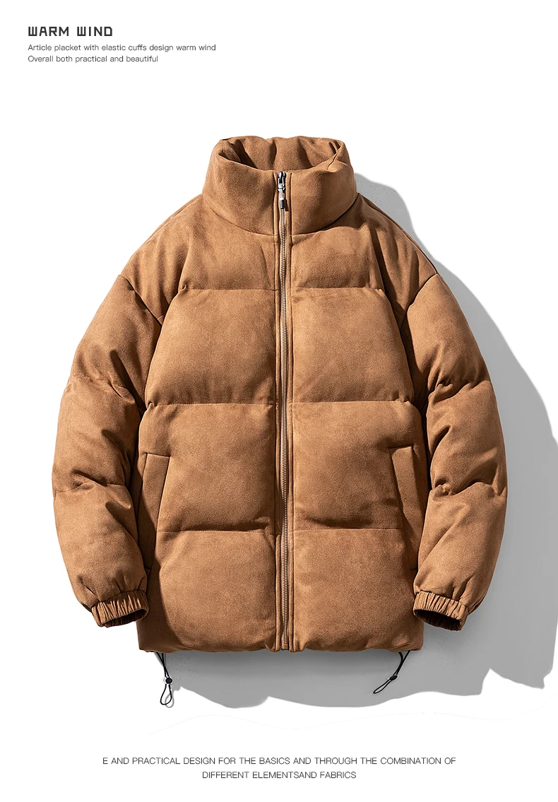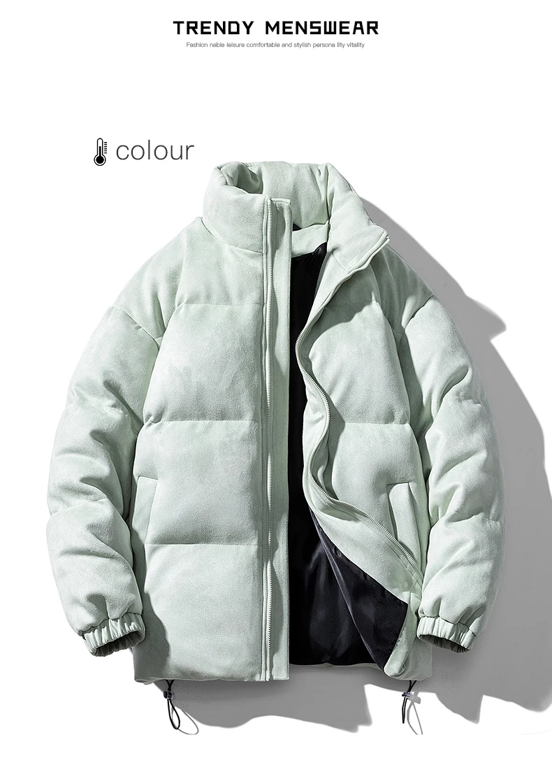 2022 Winter New Retro Parkas Coat Men Various Color Bubble Jacket Oversize Warm Solid Coat Streetwear Faux Suede Puffer Jacket