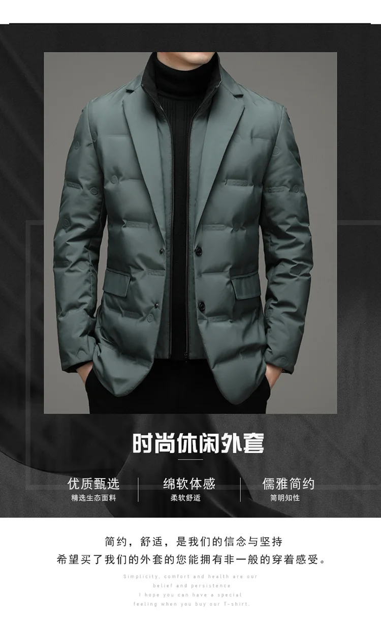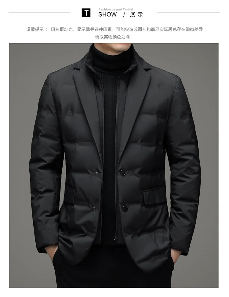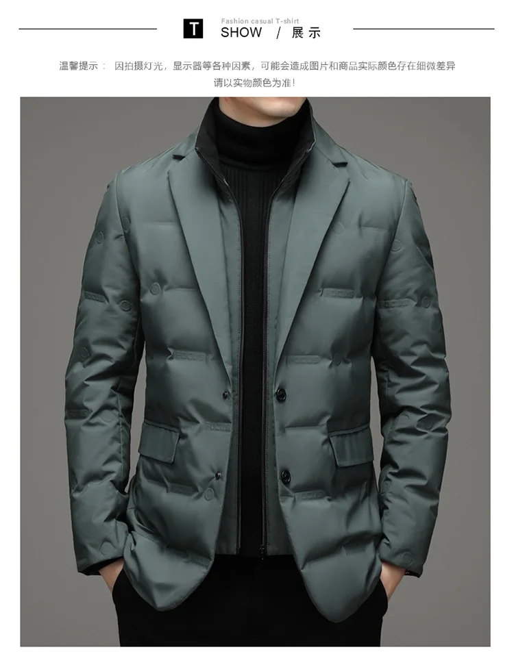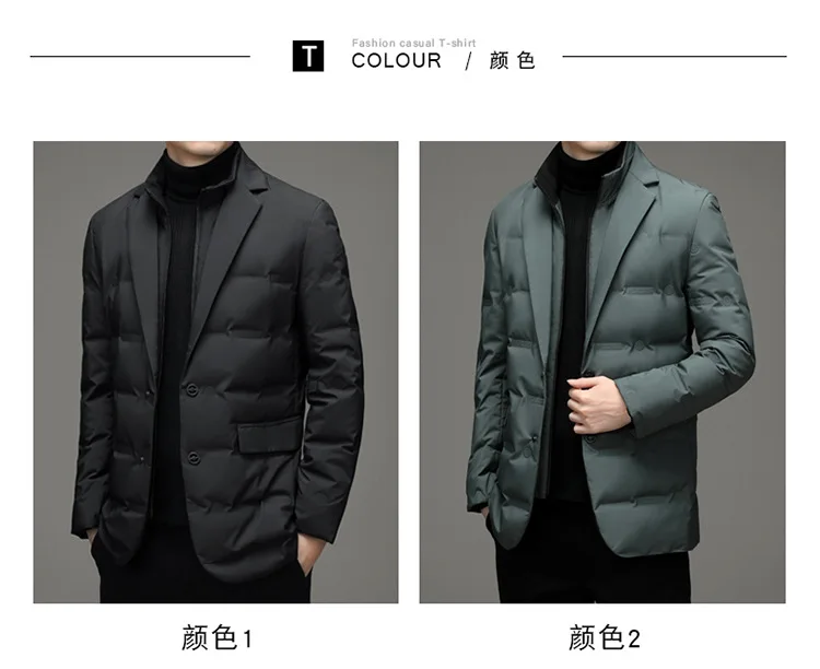 • 2023 Men's Winter New Fake Two-Piece Warm blazer Business Leisure Warm Stand-up Collar down Jacket