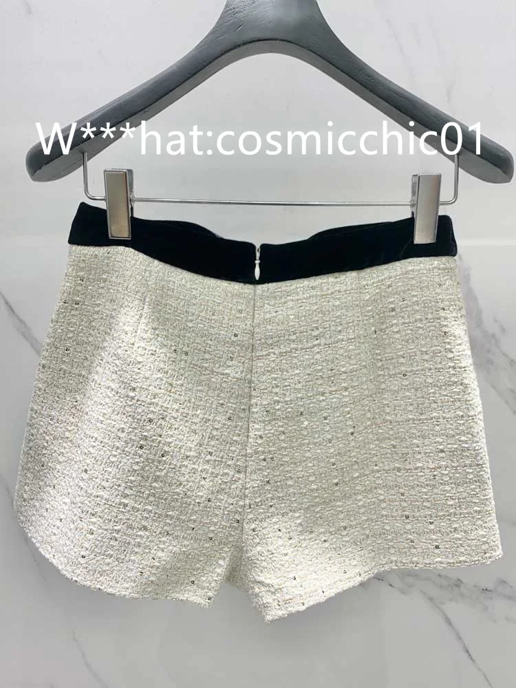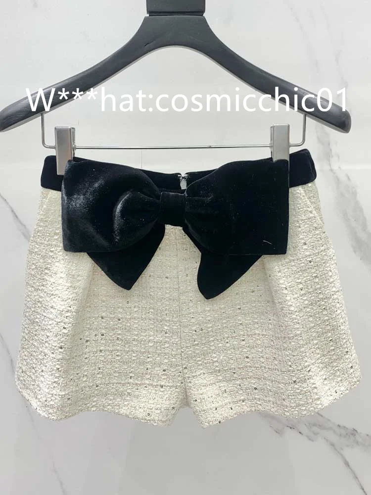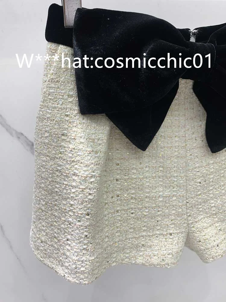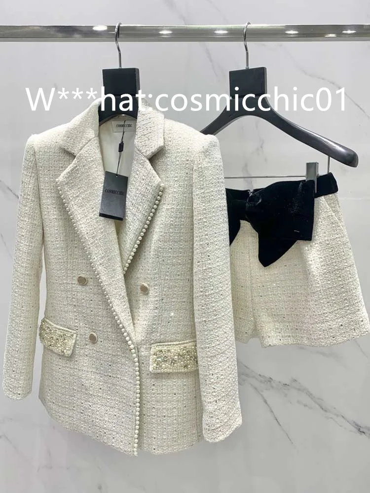 22New Autumn Winter 2piece Sets Fashion Office Sequins Beading Lapel Singel Button Long Sleeve Blazer Coat High Waist Bow Shorts.A1034
