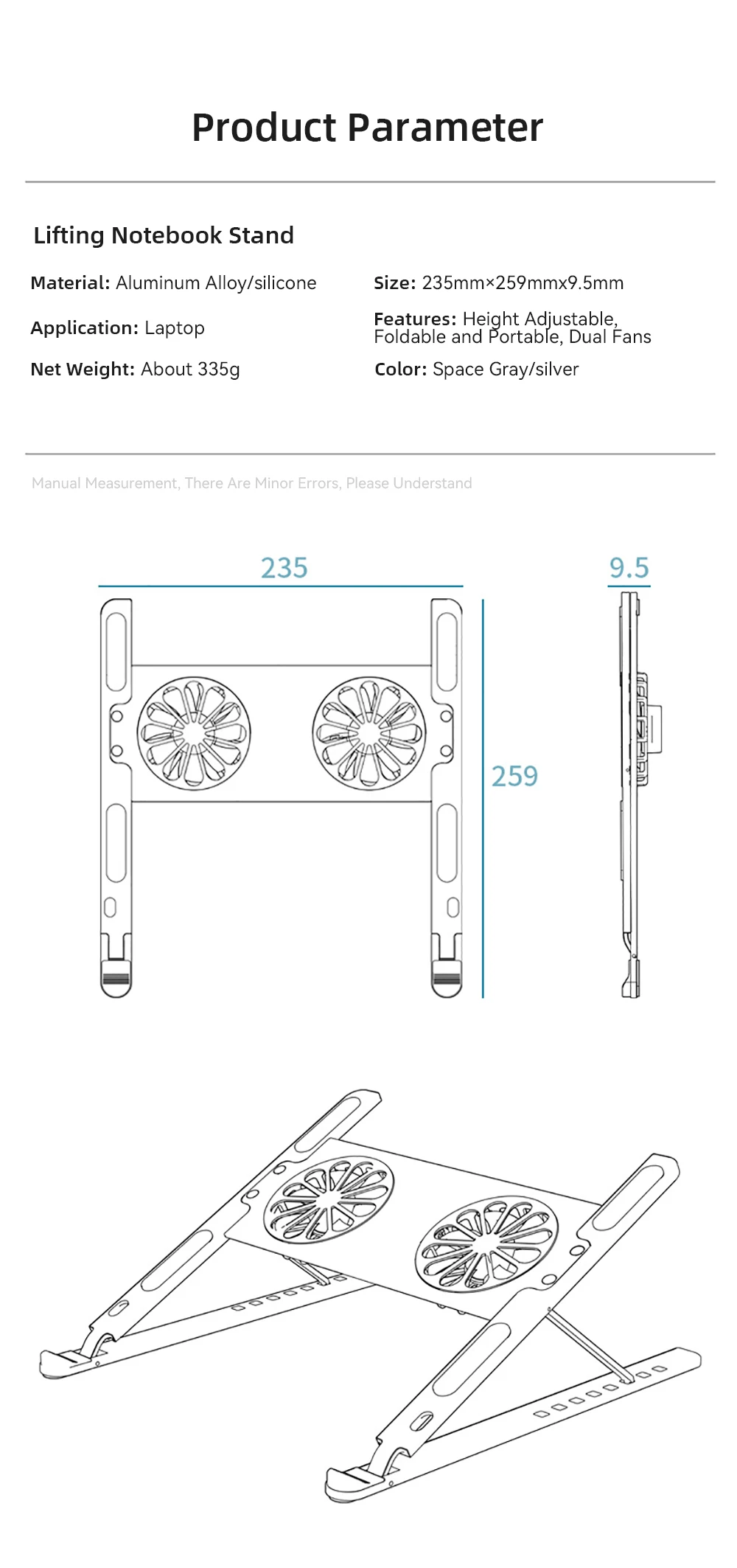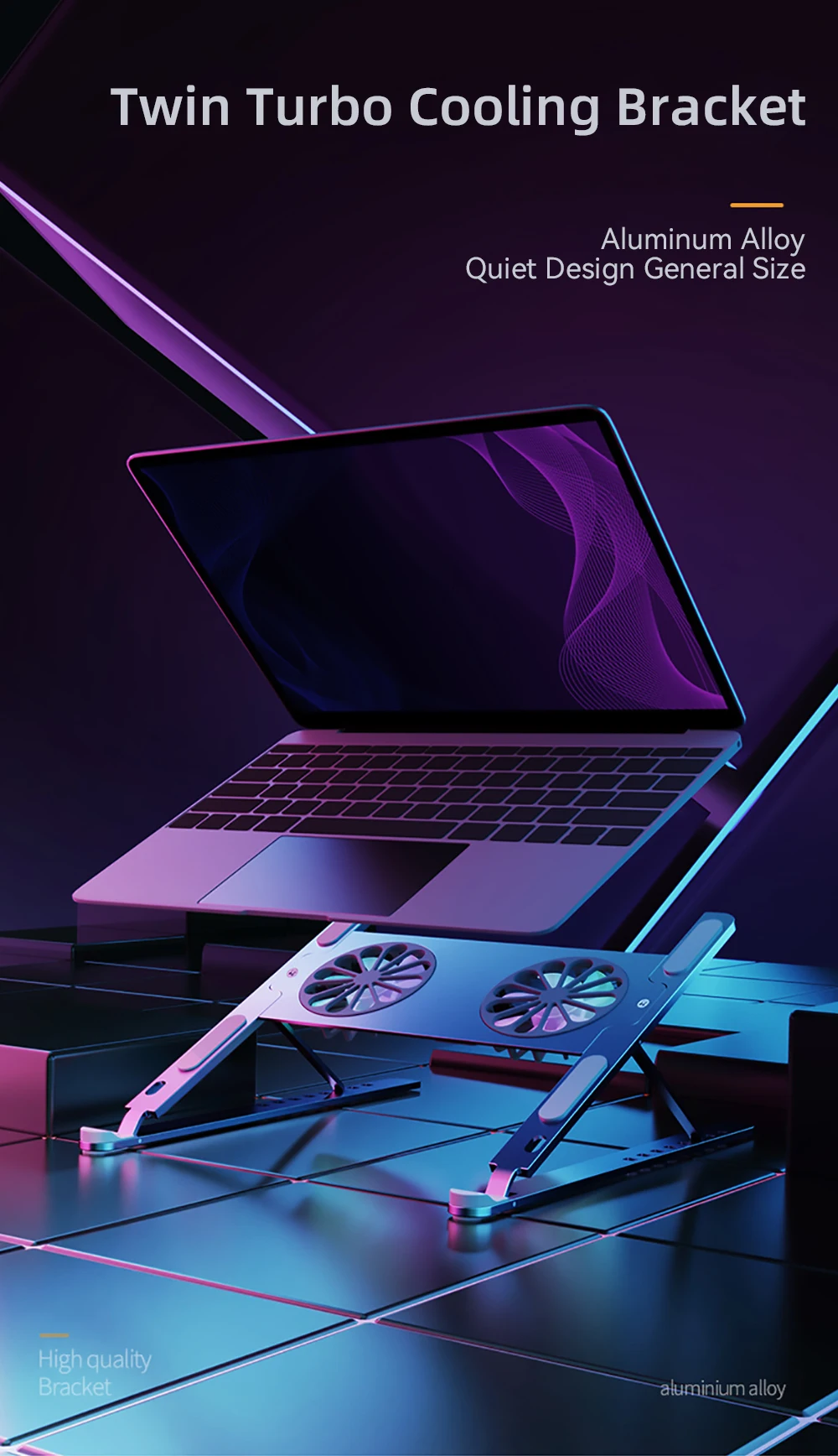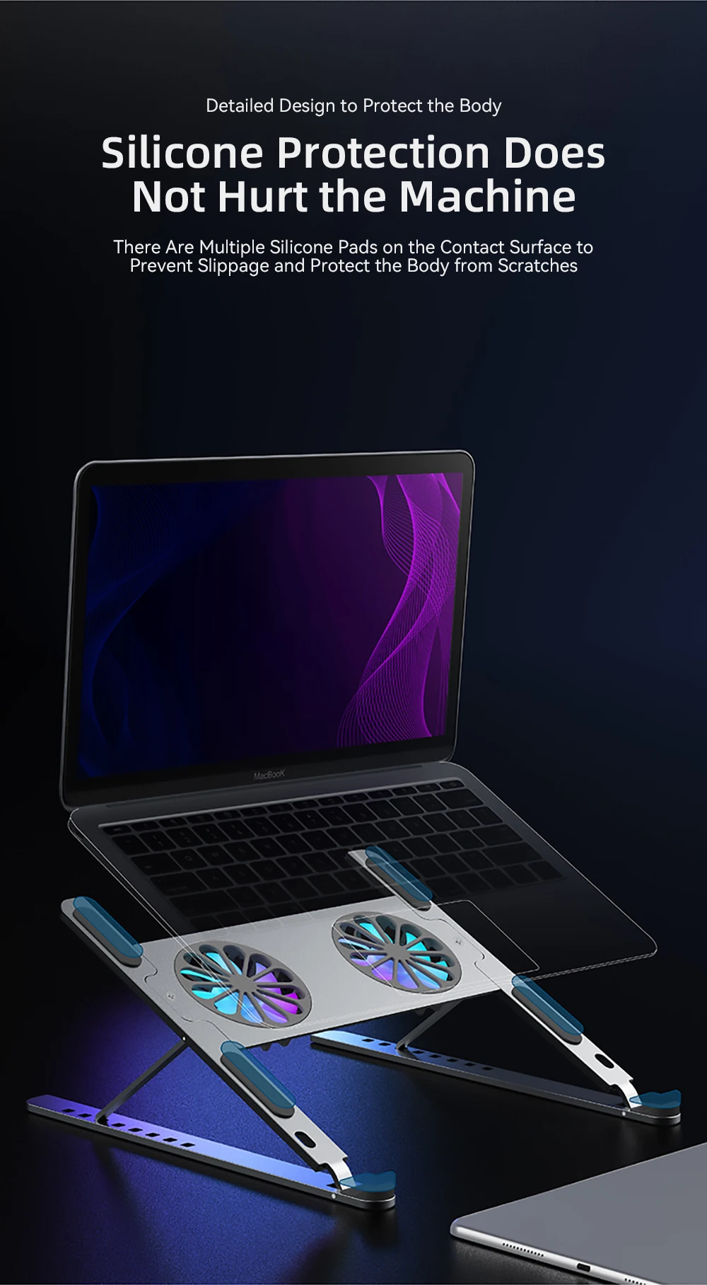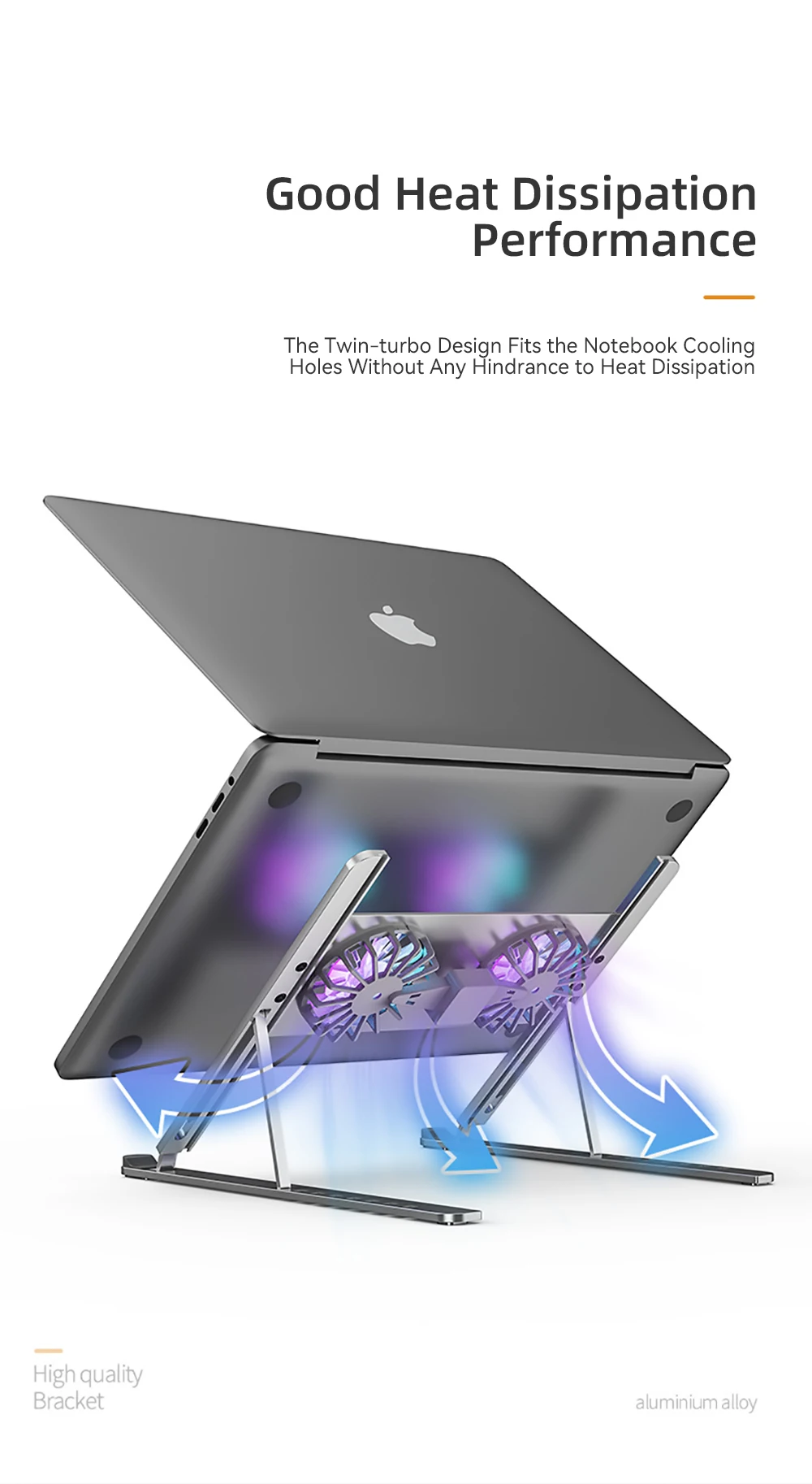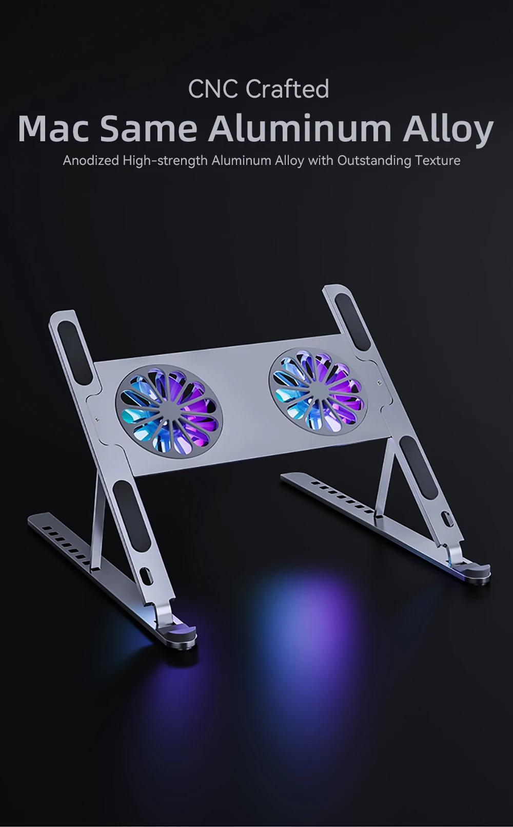 • Aluminum Adjustable Laptop Stand For Macbook Computer PC iPad Tablet Support Notebook Stand Cooling Fan Pad Laptop Holder Base