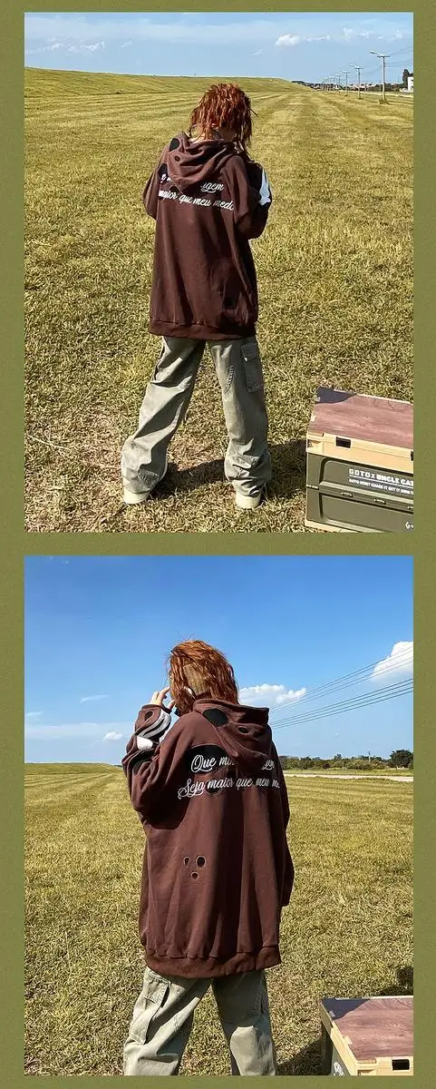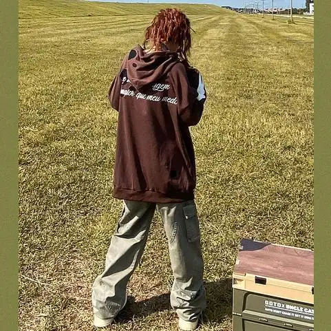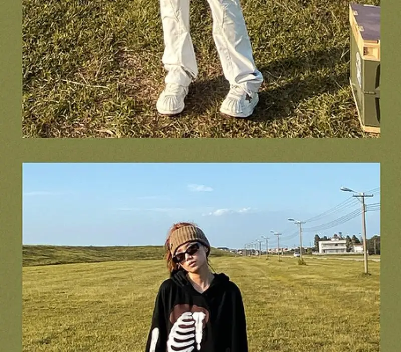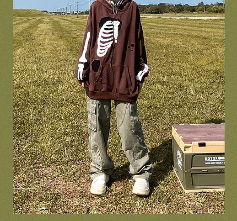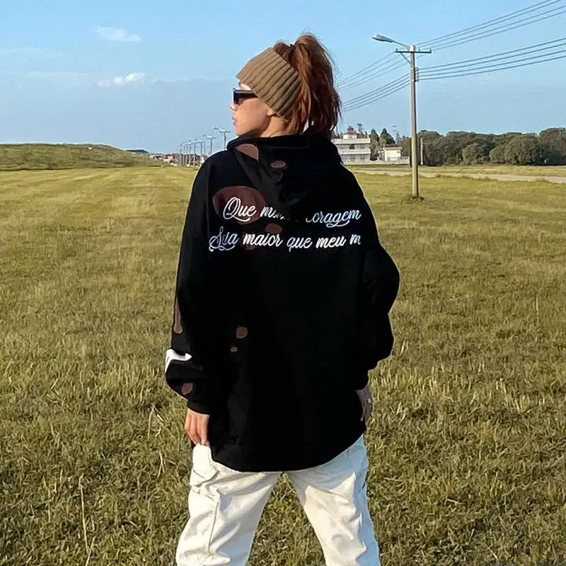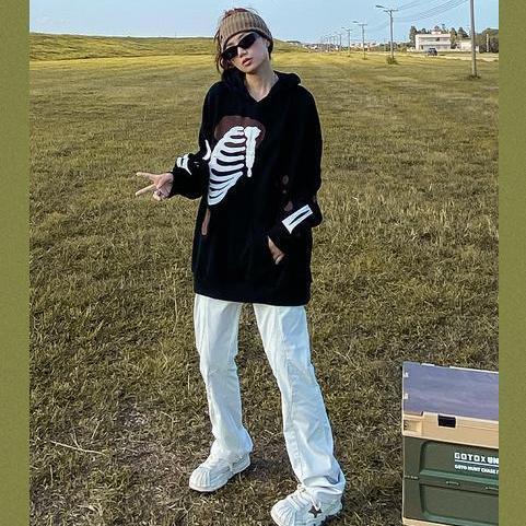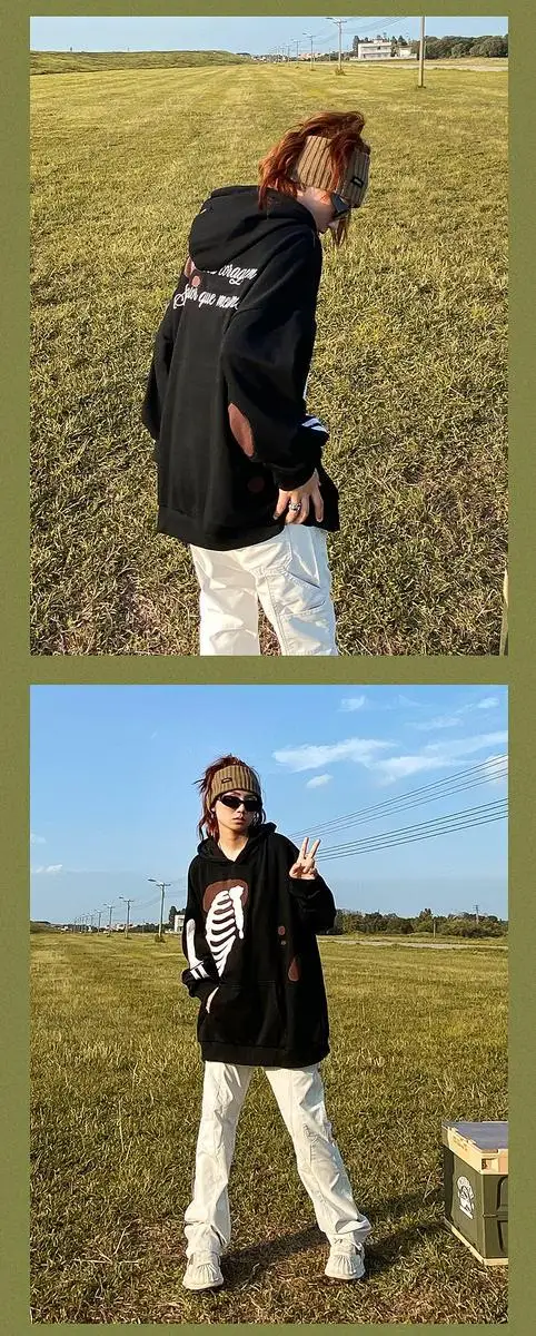 American retro street Y2K patch skull print hooded sweater sweatshirt men and women oversize niche high street jacket jacket ins