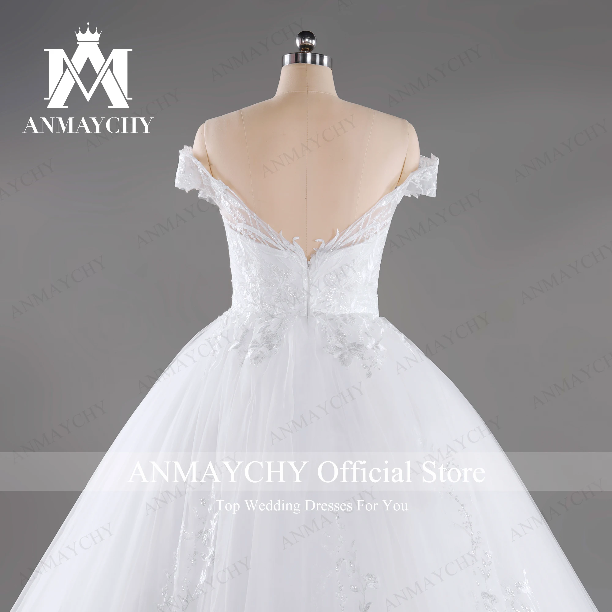 ANMAYCHY A-Line Wedding Dress For Women 2022 Bride Sweetheart Off The Shoulder Backless Appliques Wedding Gown Vestidos De Novia